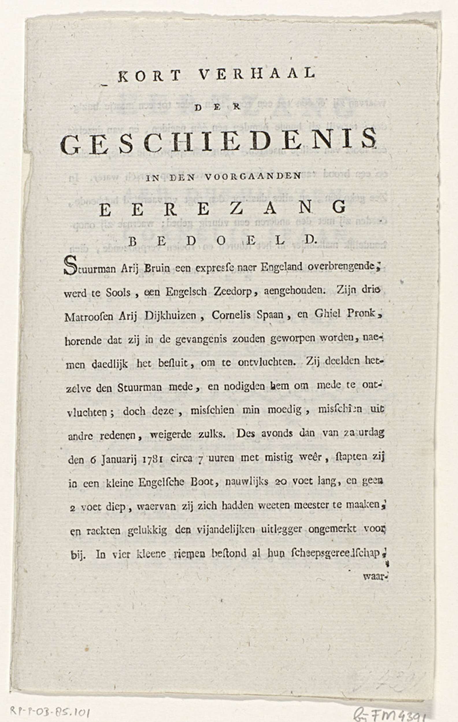 Lofzang op de drie gevluchte Scheveningse vissers, 1781