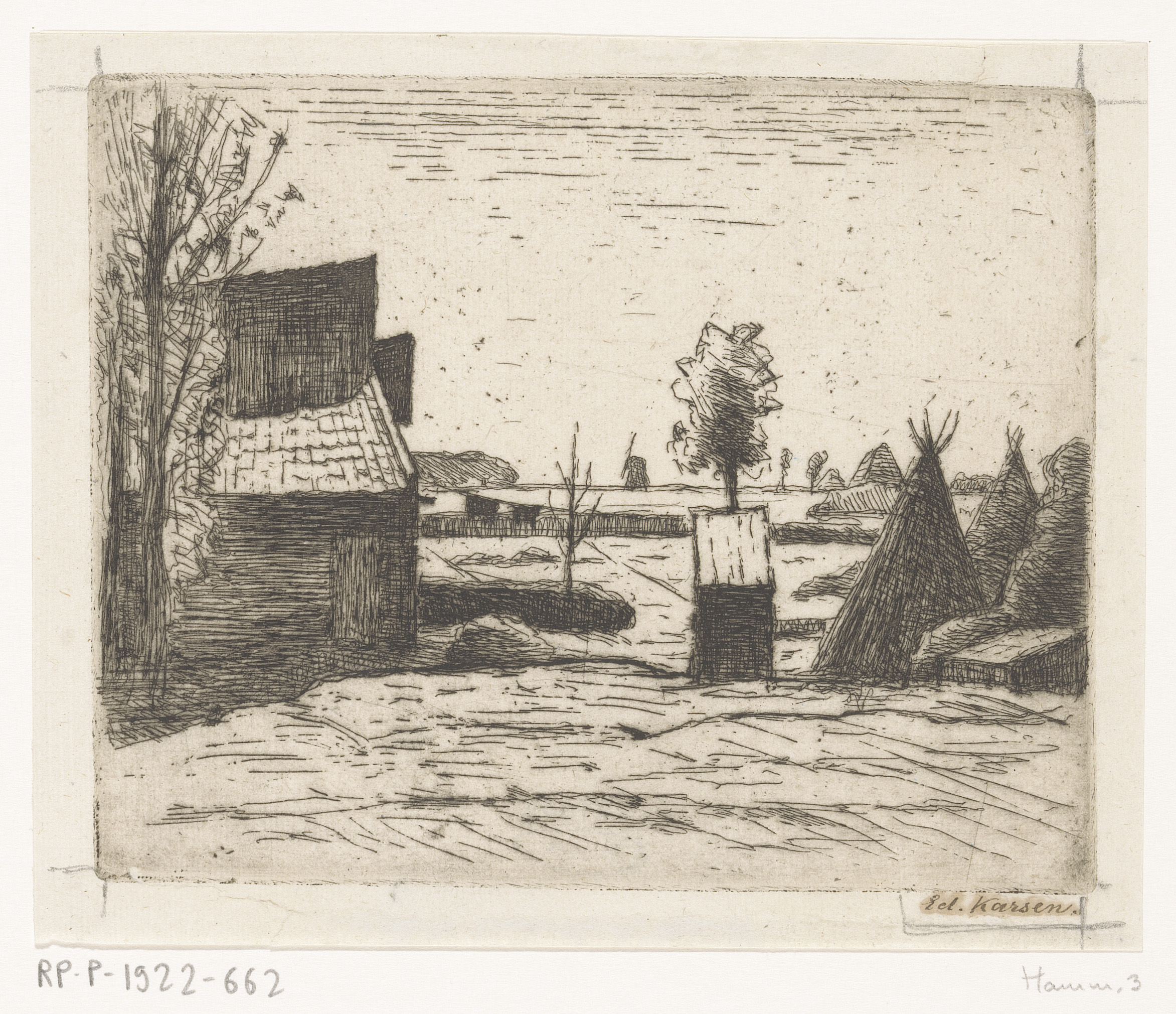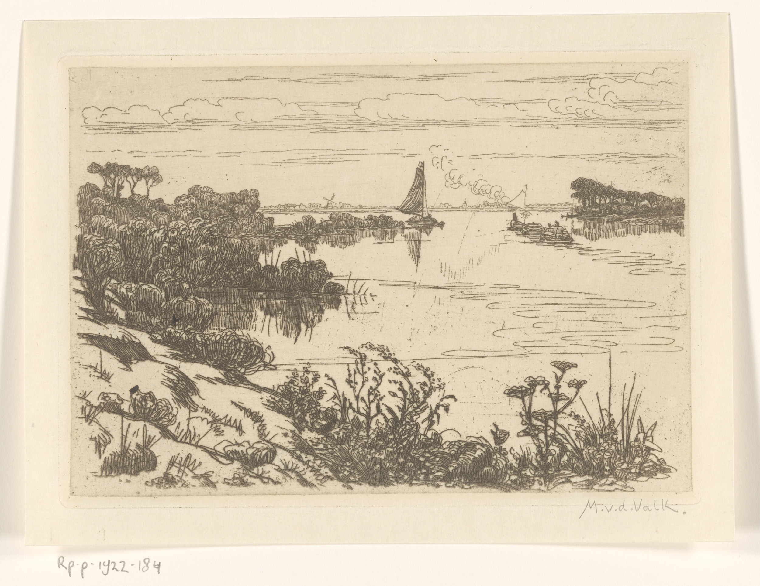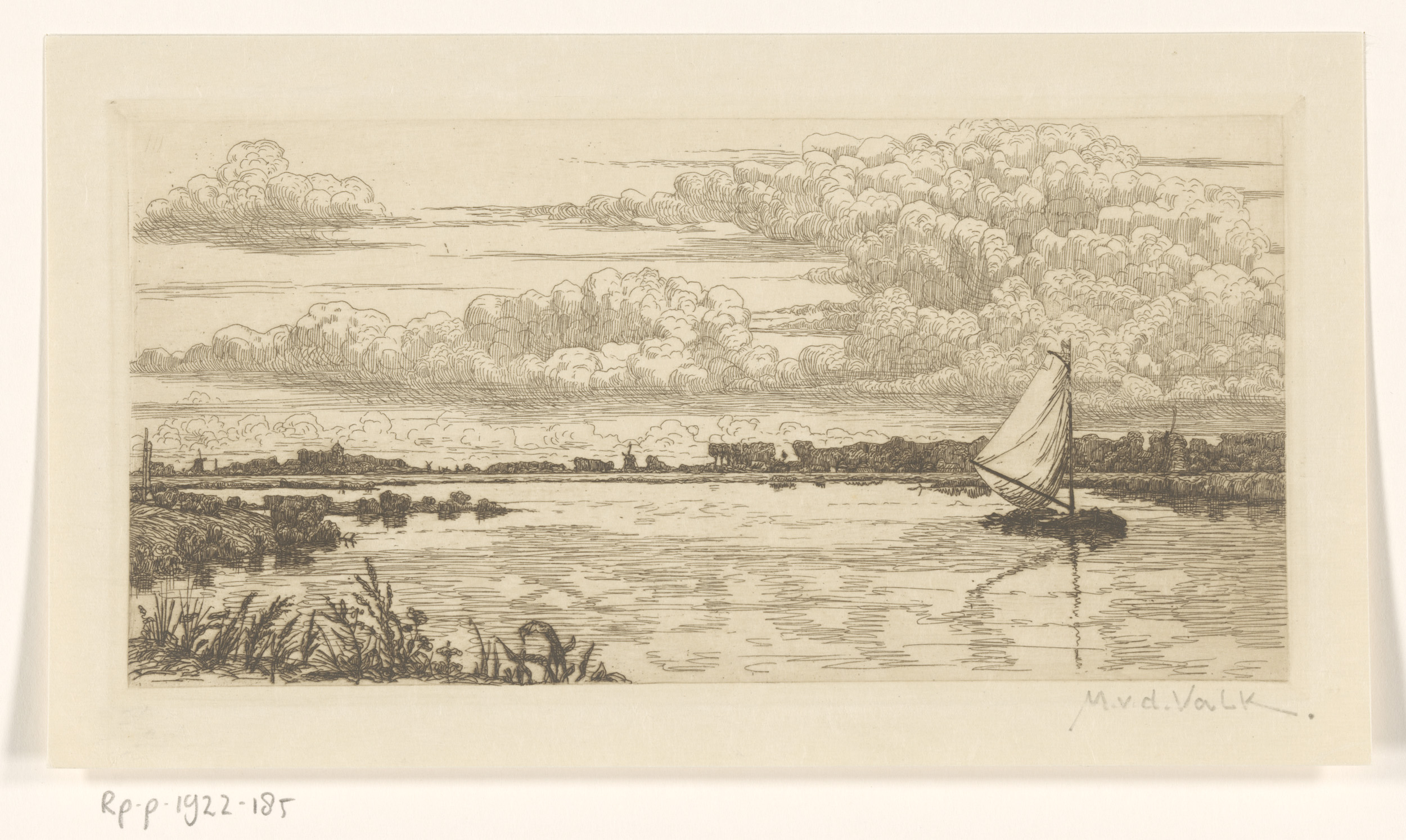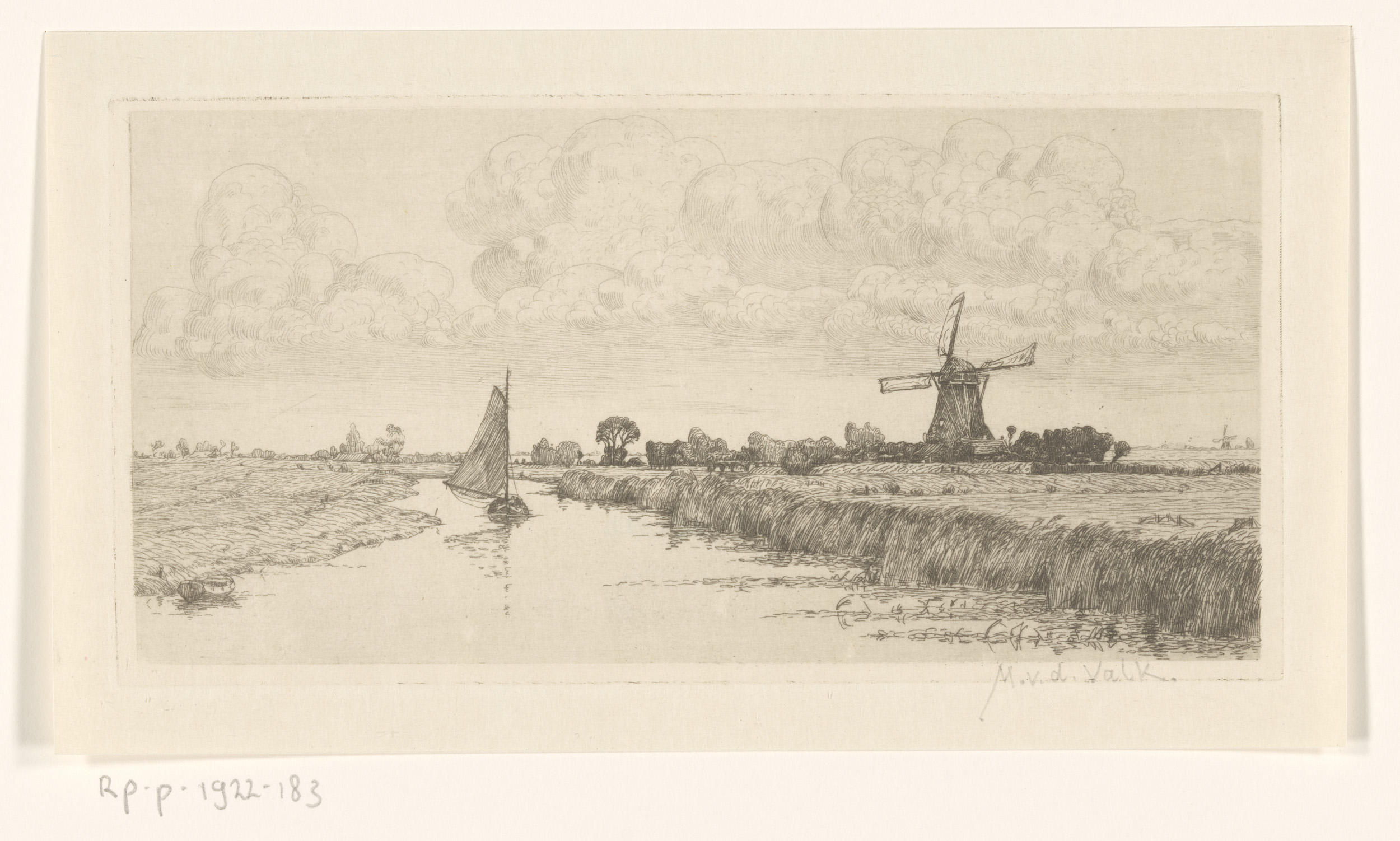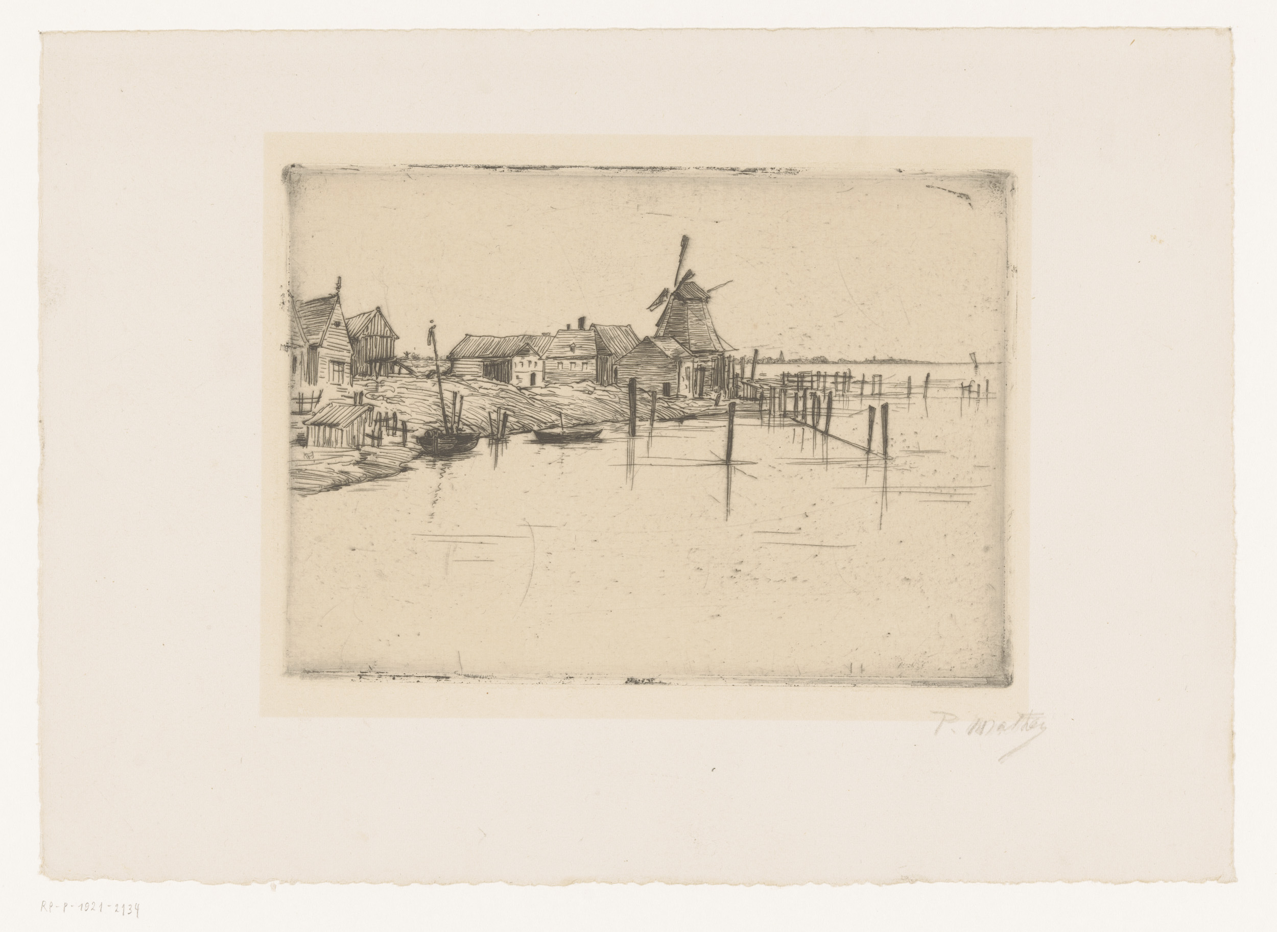 Landschap met windmolen aan het water, mogelijk Marken