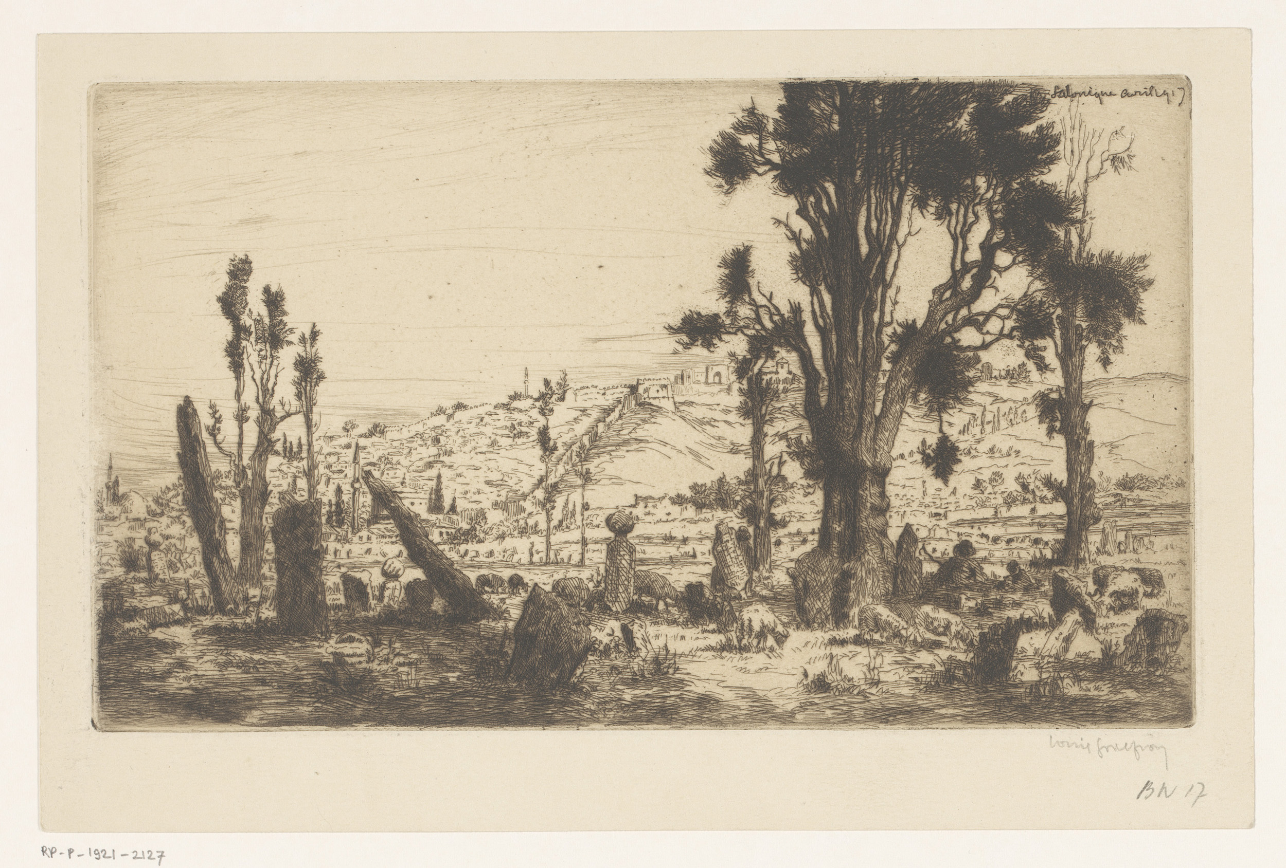 Gezicht op een begraafplaats bij Thessaloniki