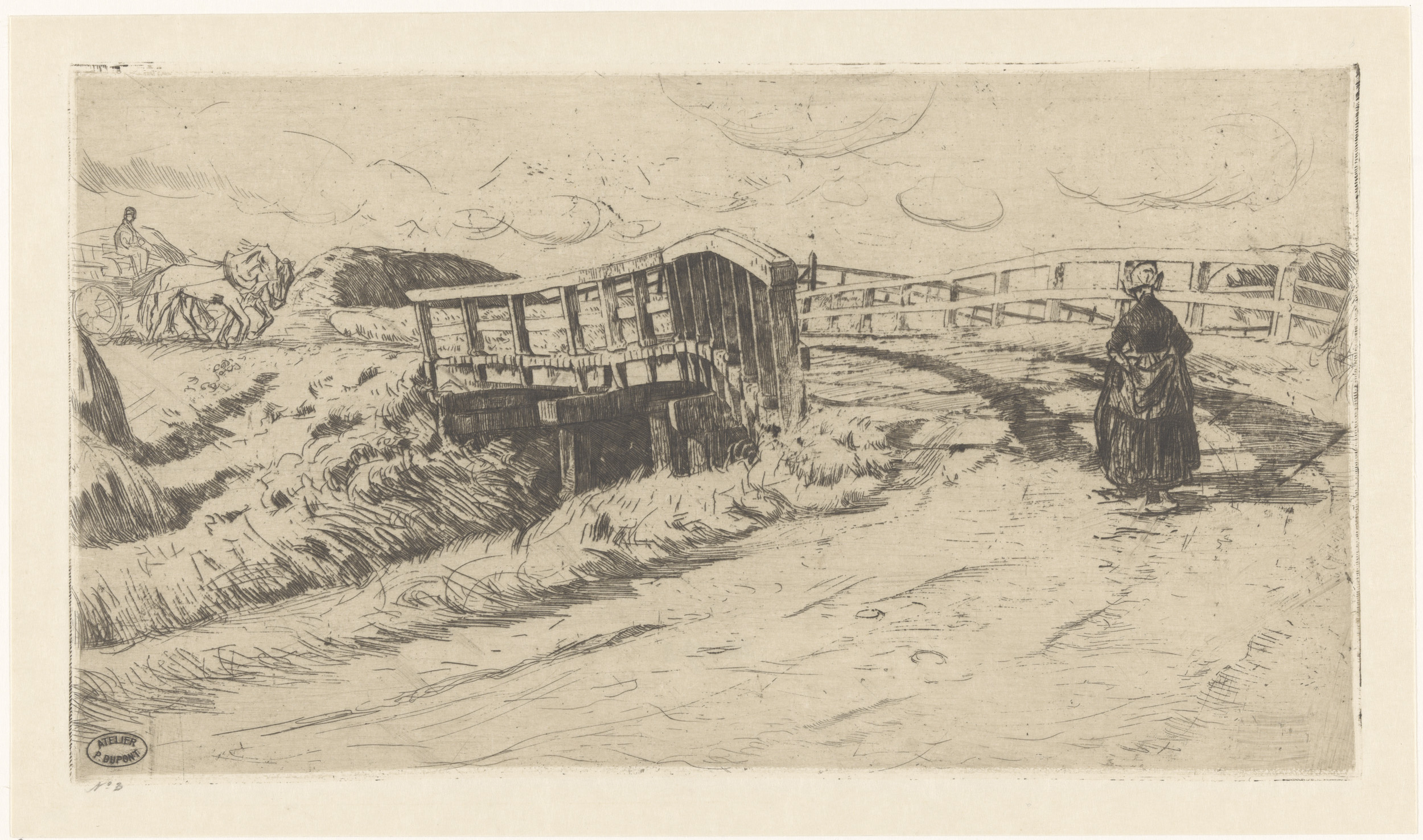 Landweg met brug