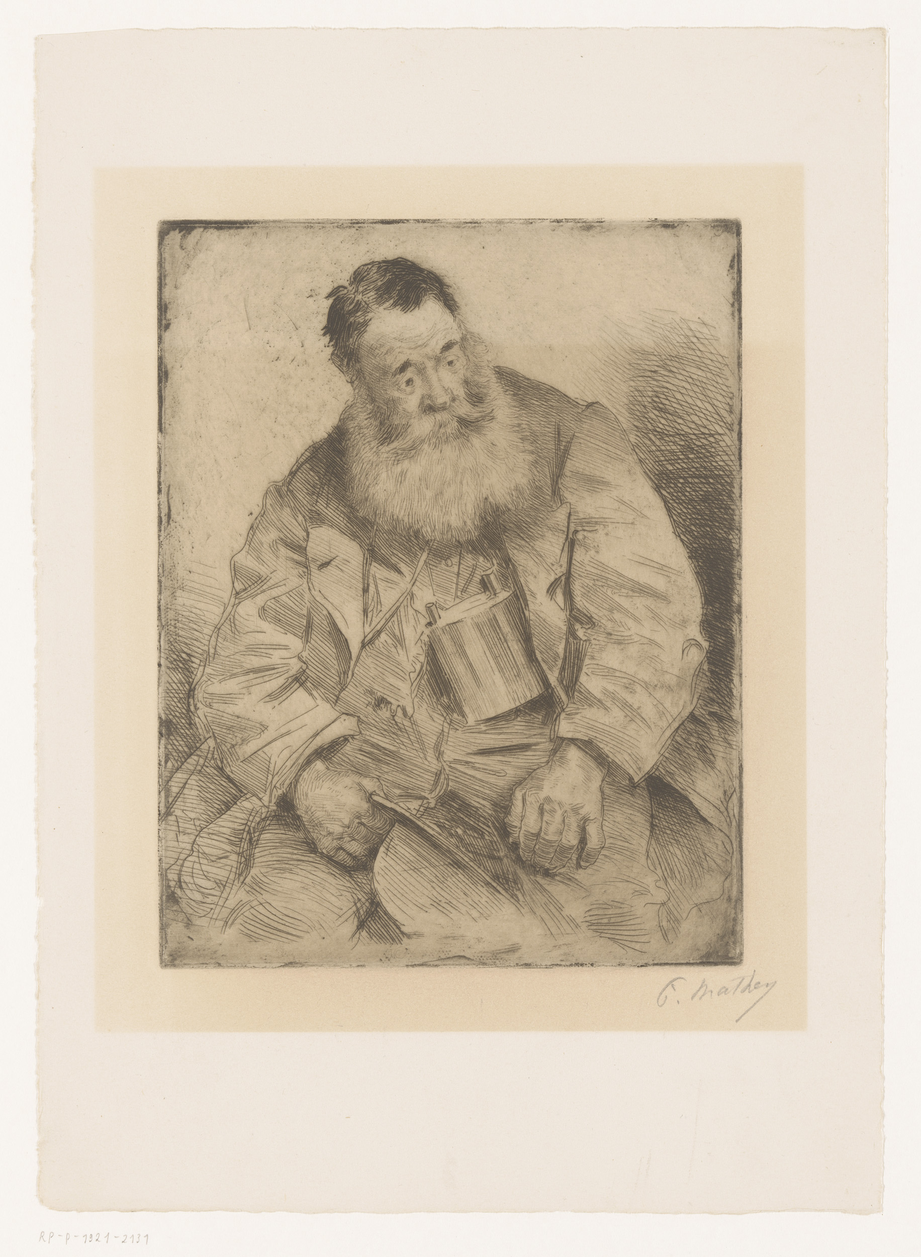 Portret van een zittende man met baard