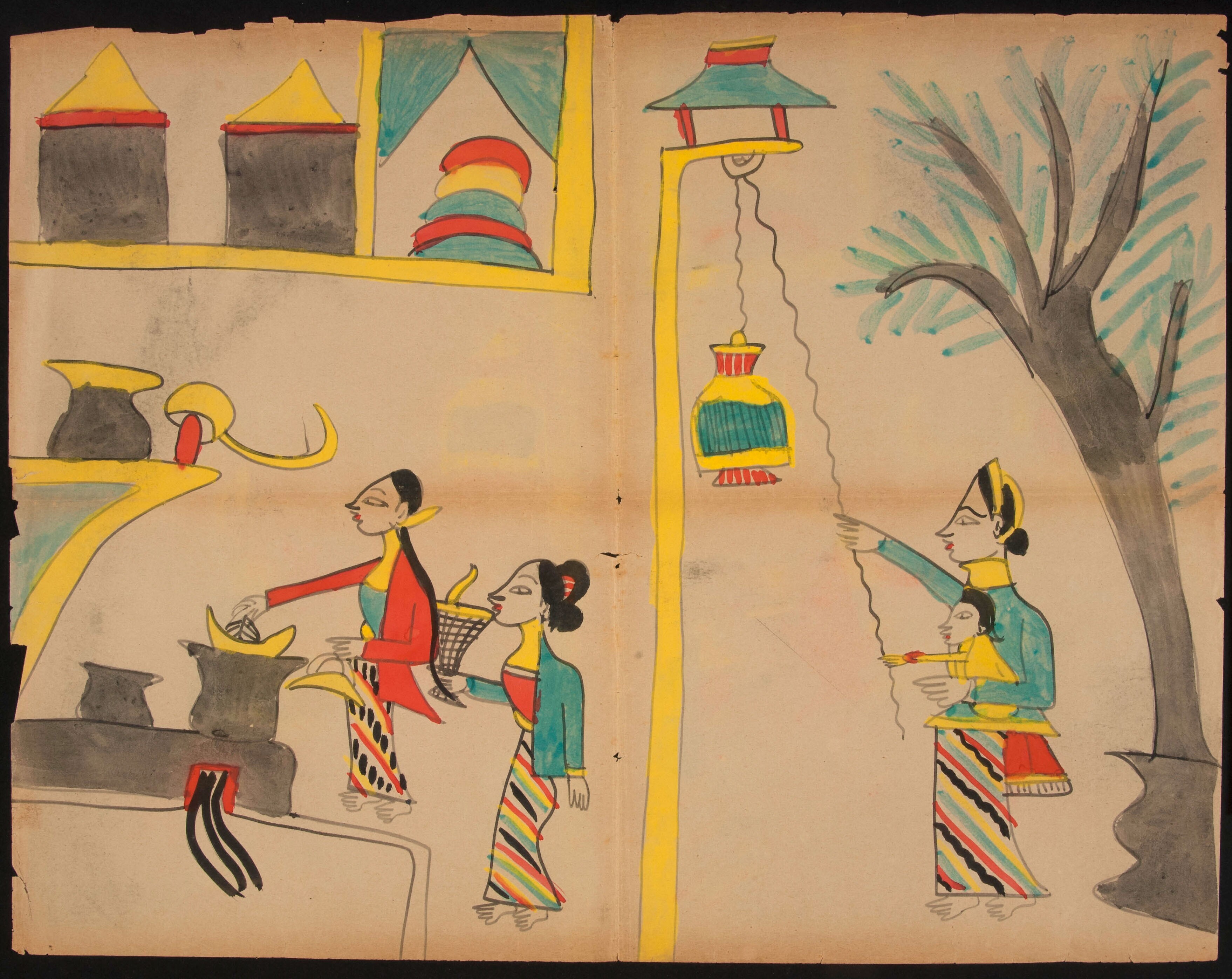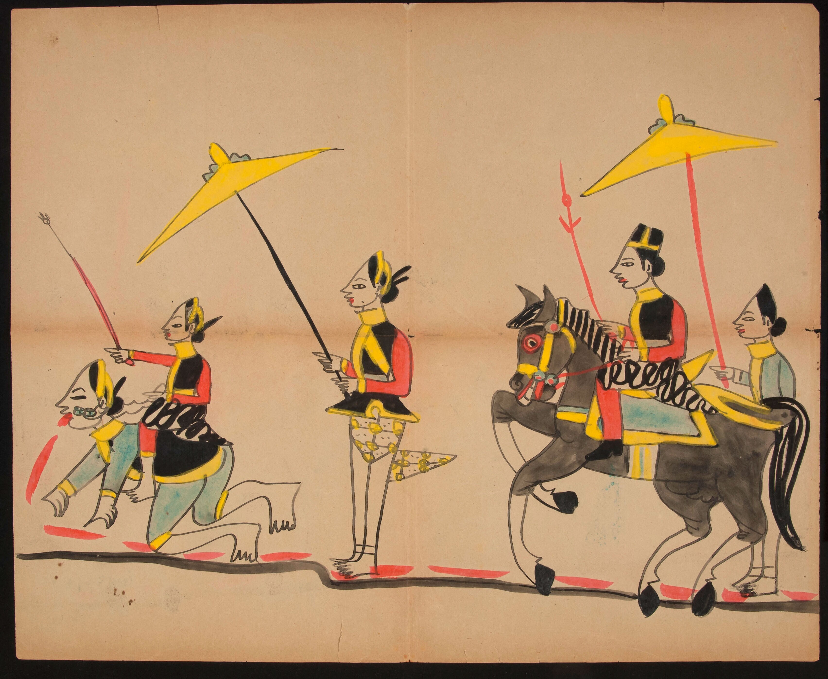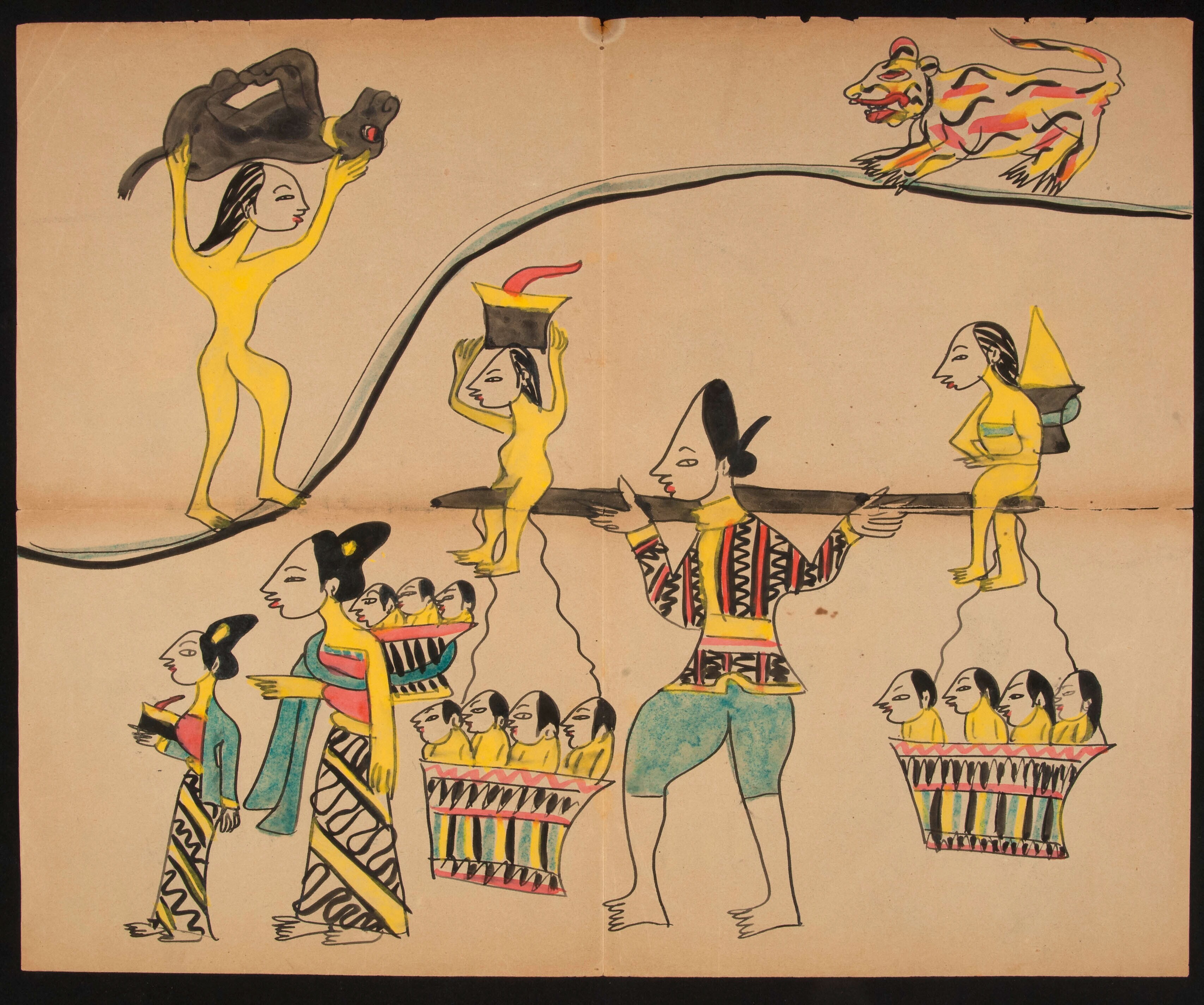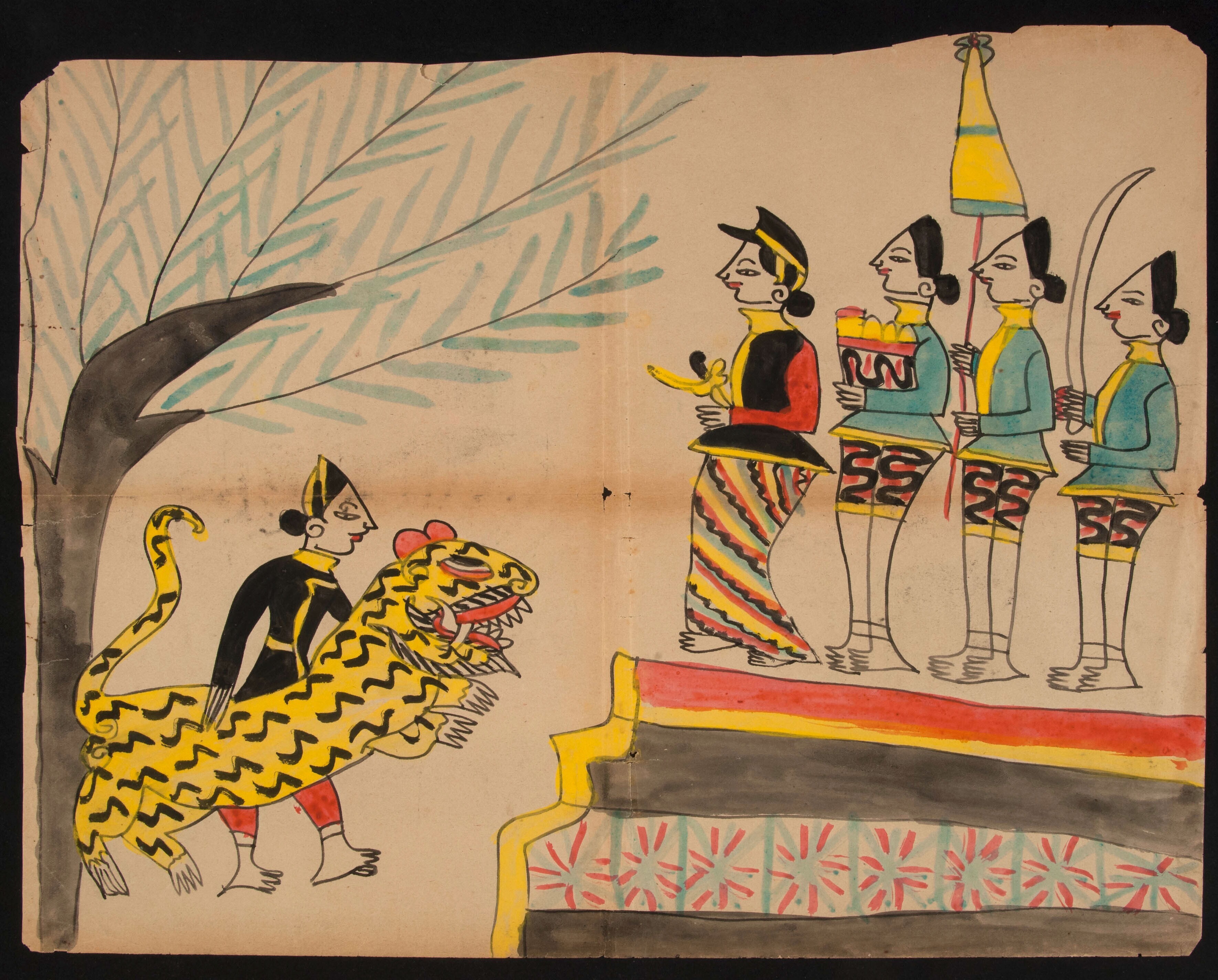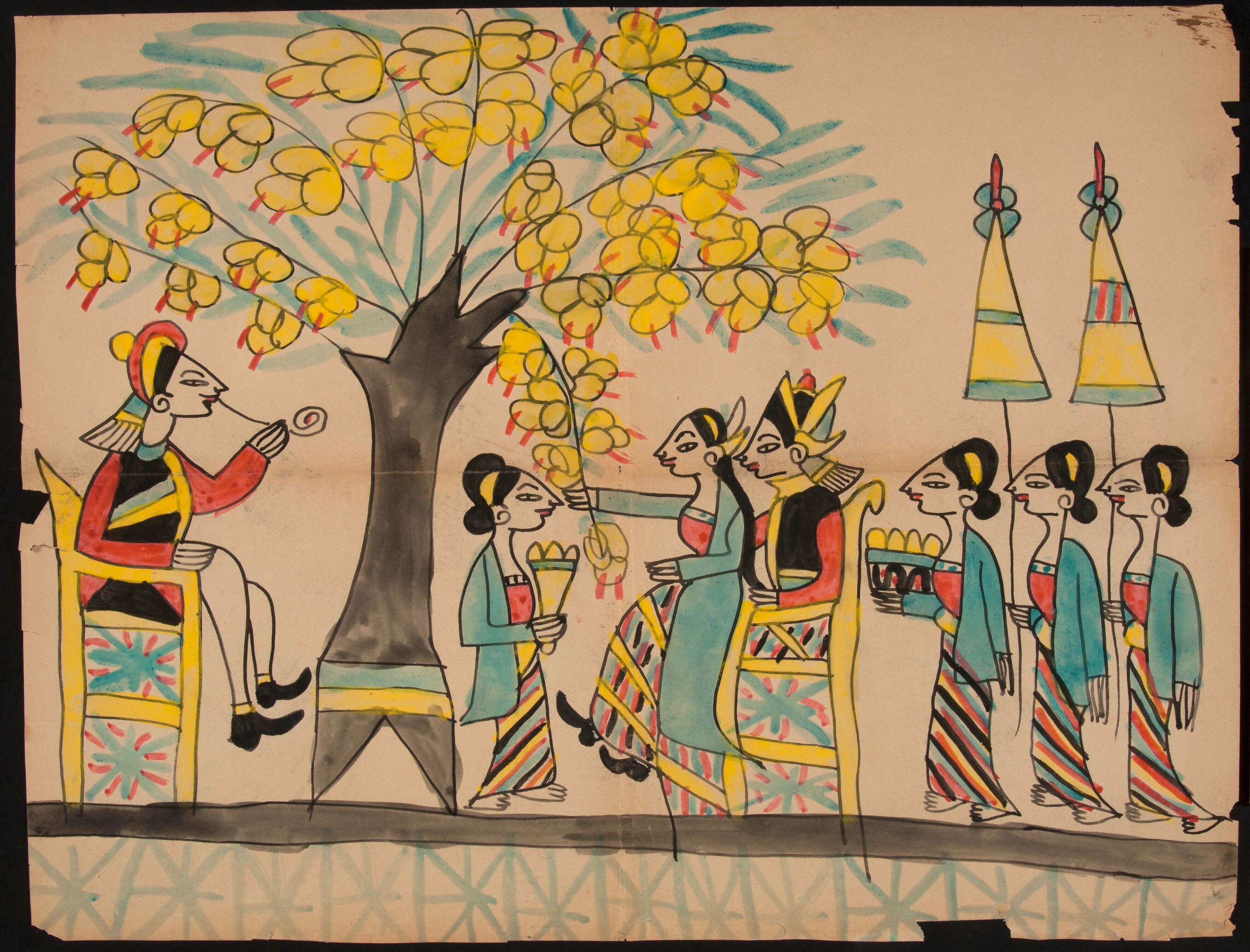 Een Javaanse processie met een man, een vrouw, kinde...