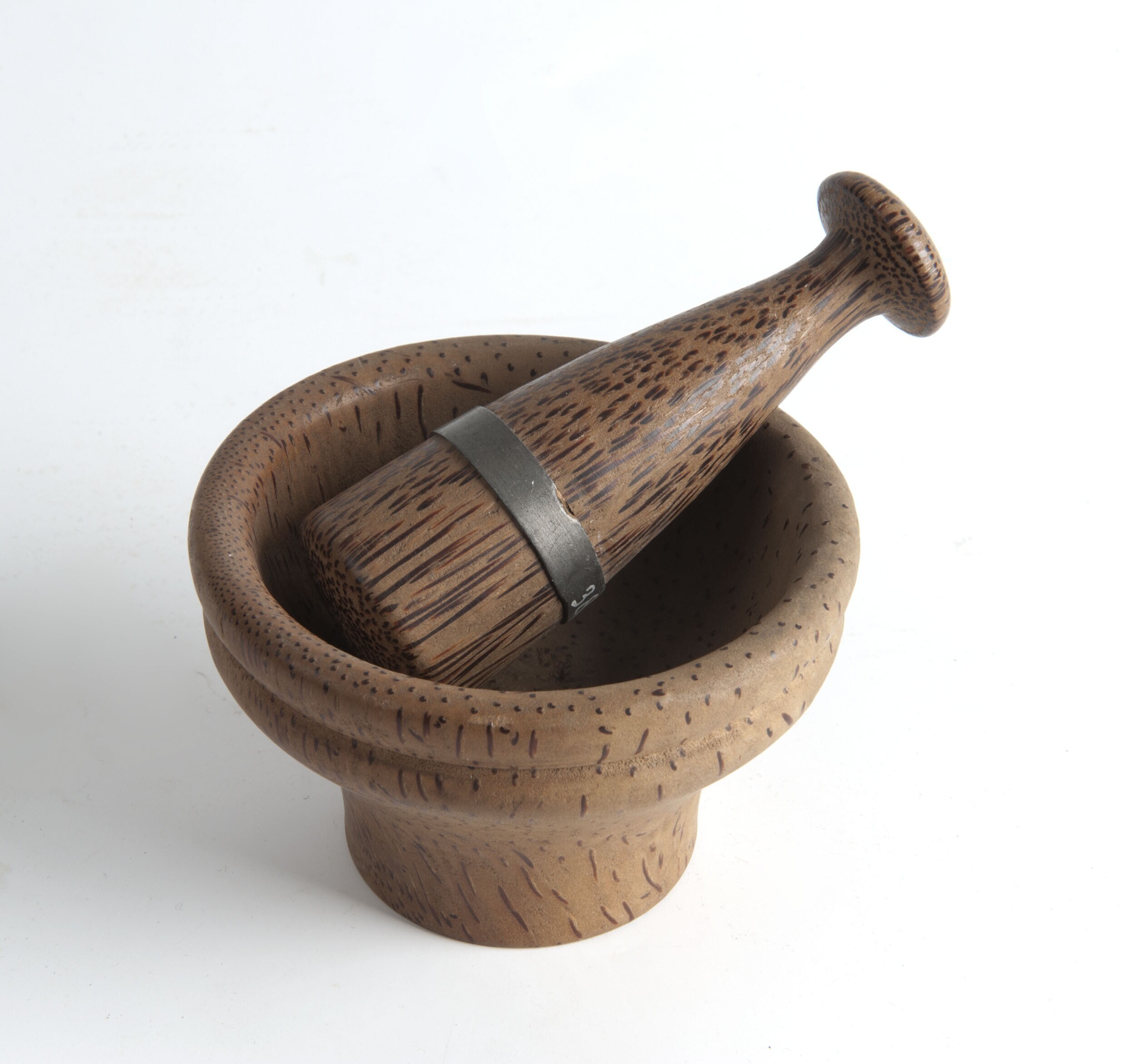 Palmhouten vijzeltje (a) met (stamper b) voor het fi...
