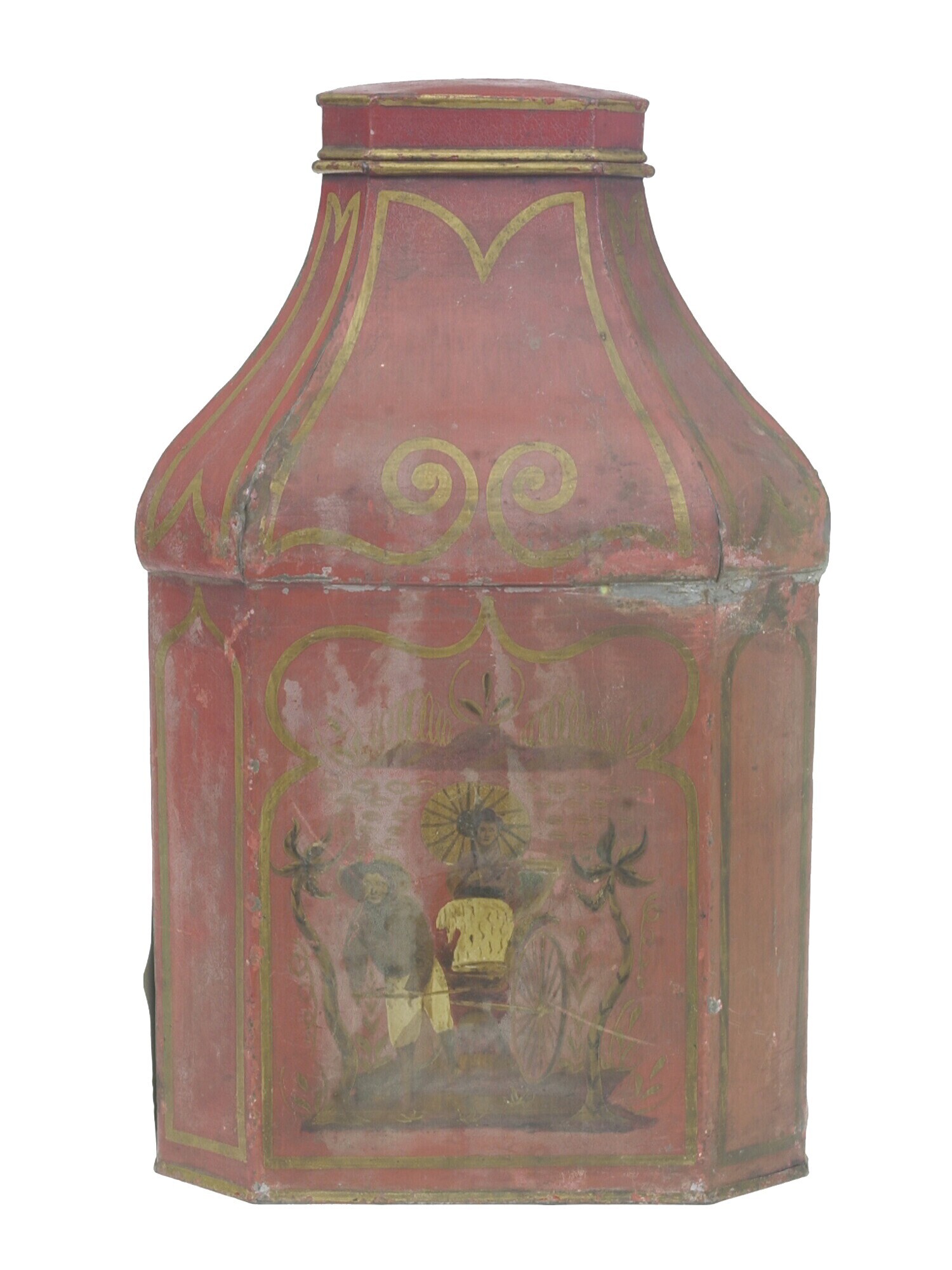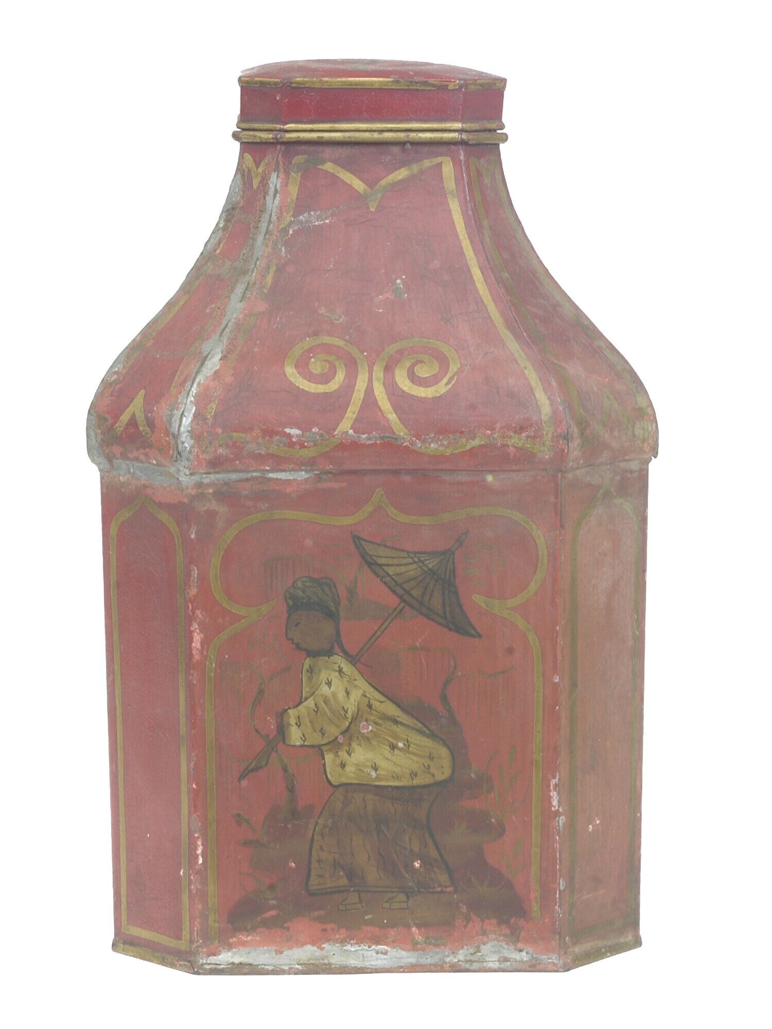 Rode gelakte grote theebus met Chinese motieven