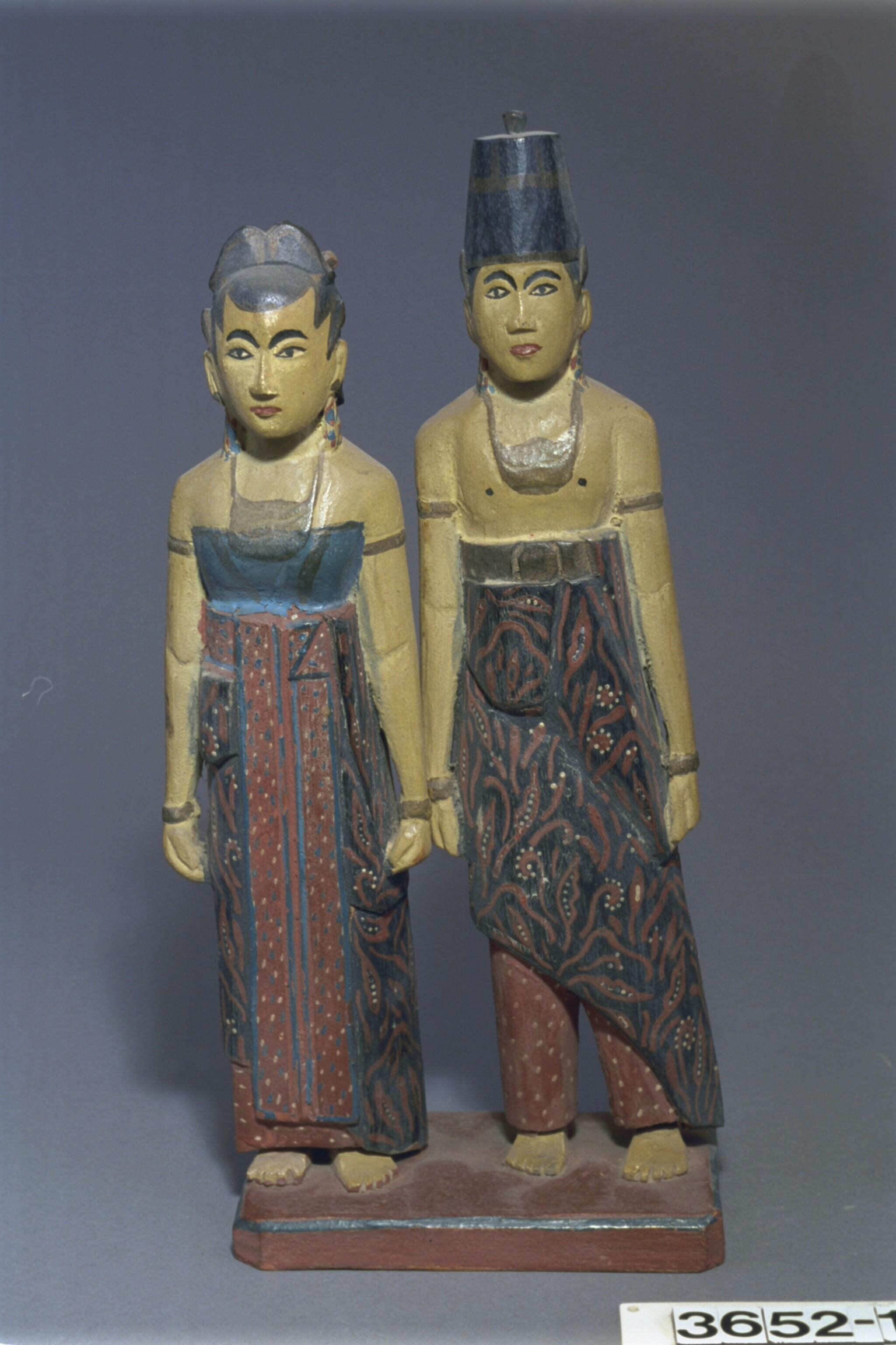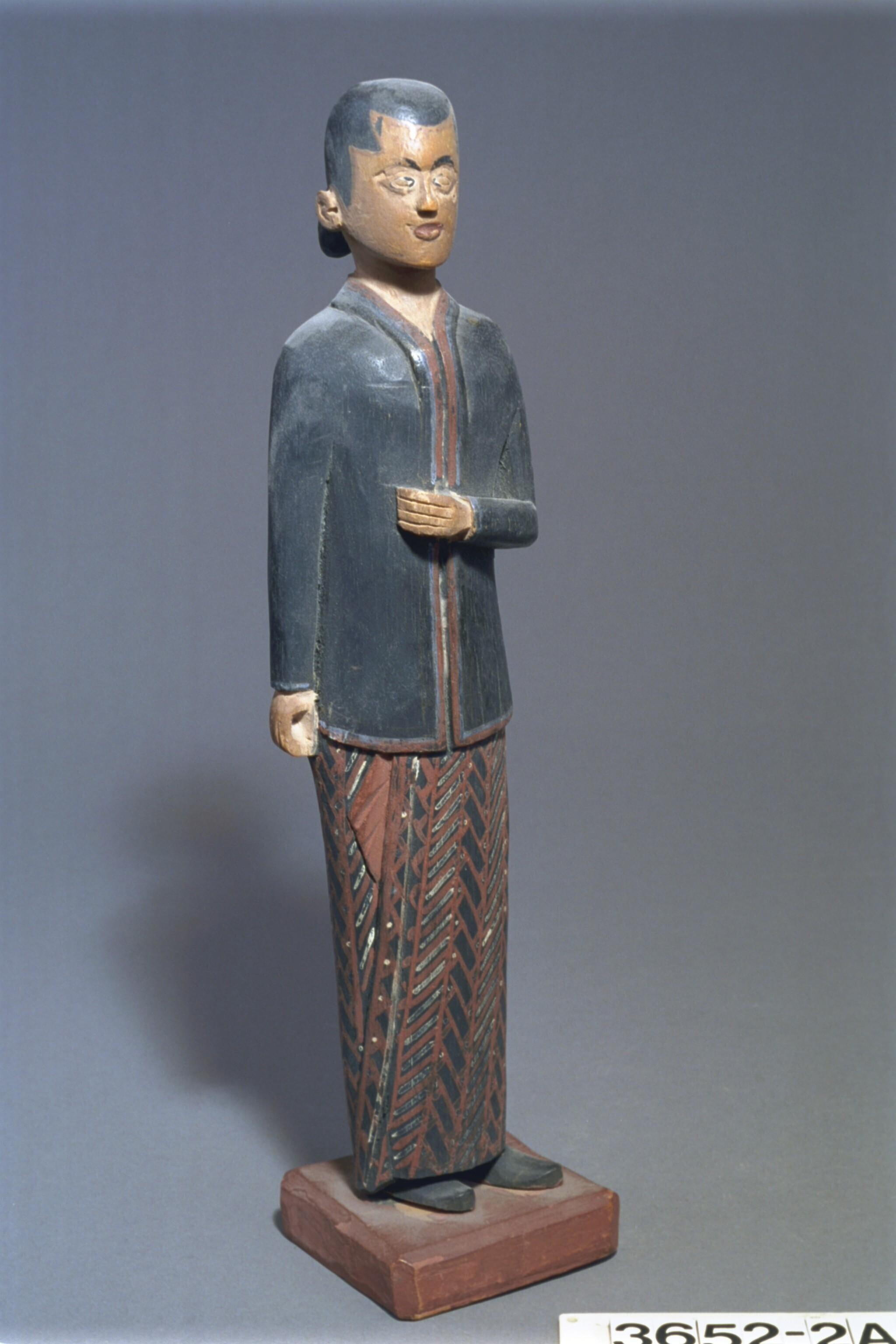 Beschilderd houten beeld van een Javaanse vrouw, ond...