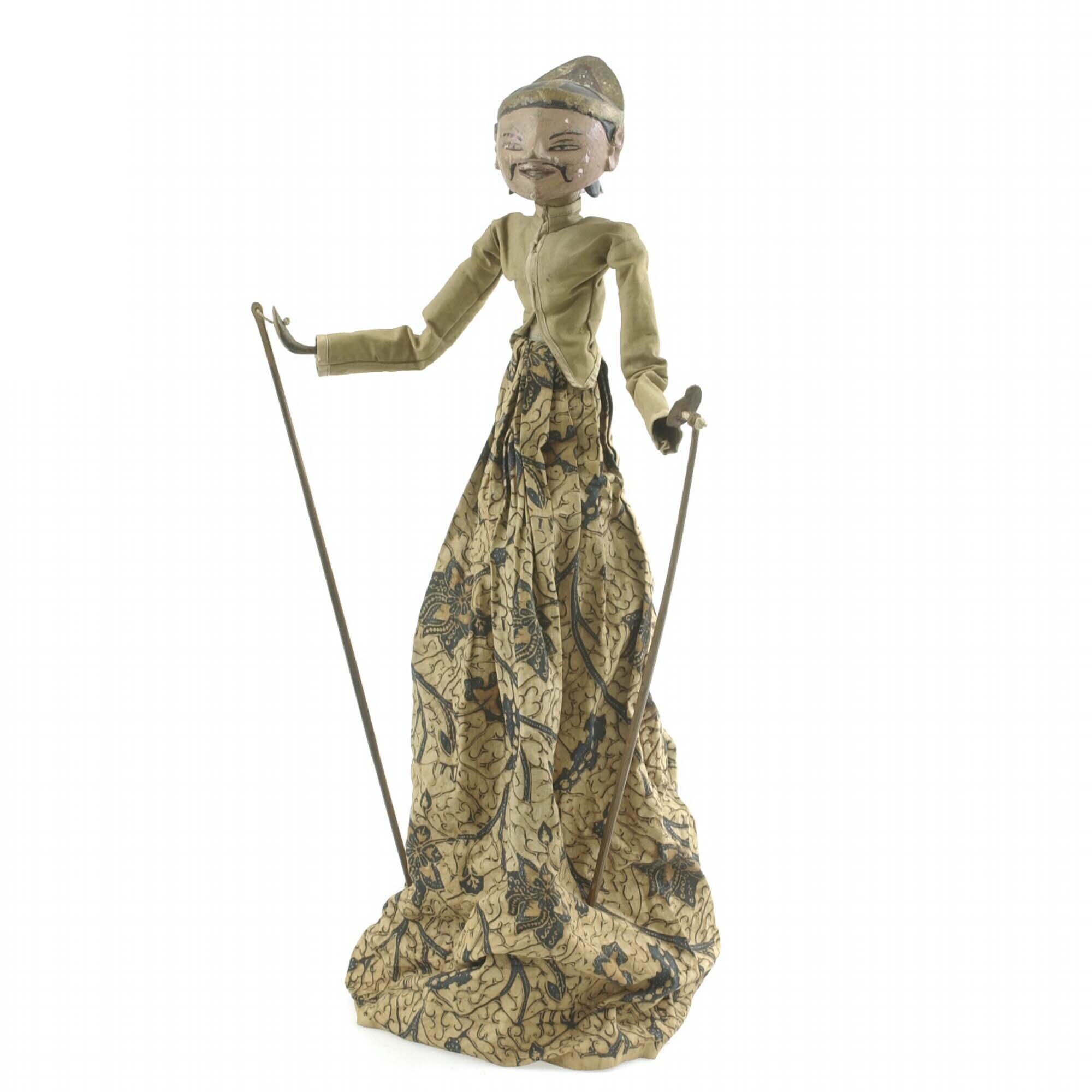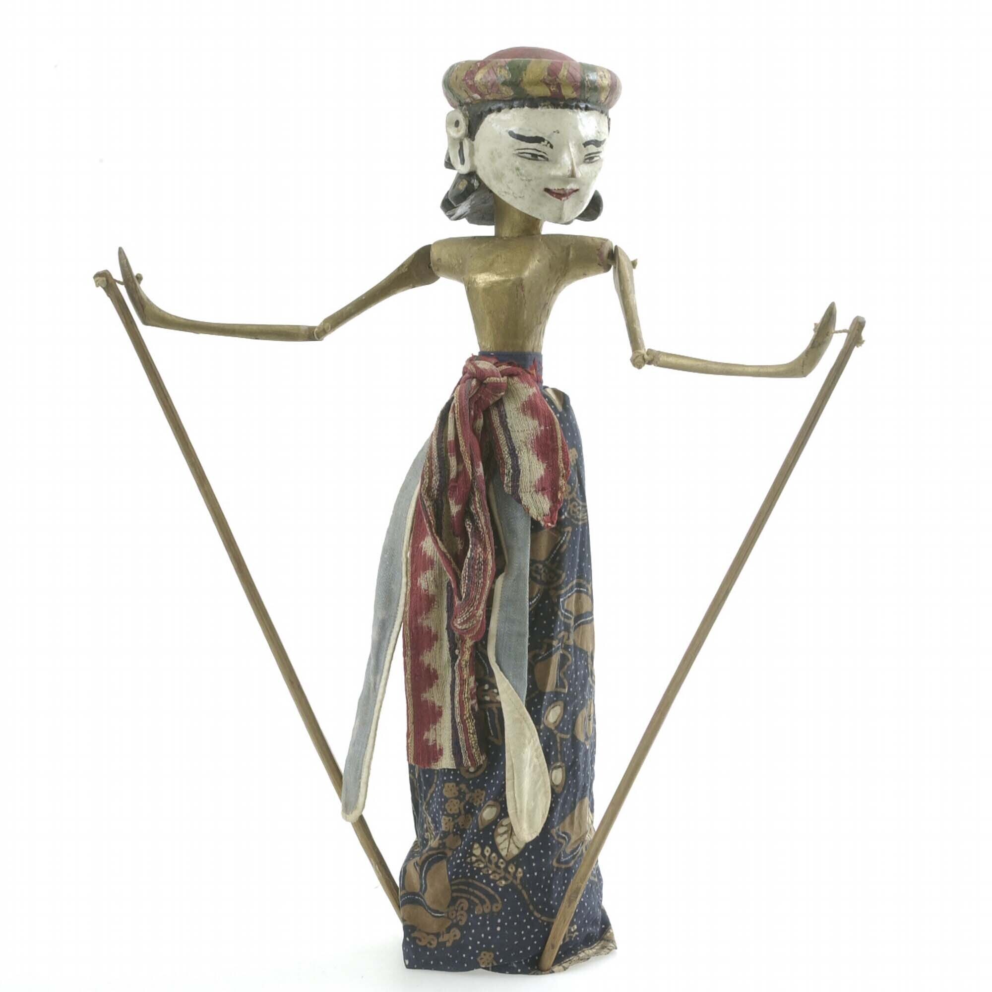 Ronde houten wayangpop (golek) voorstellend een vrou...