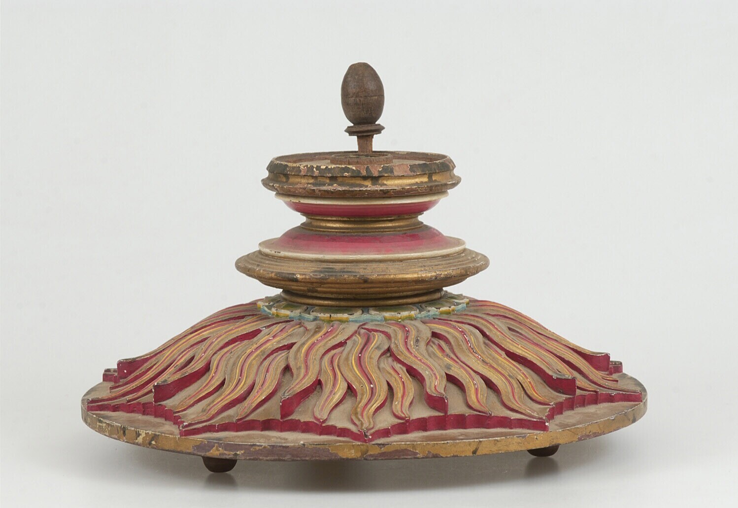 Houten lamppoot in rood en goud geschilderd, versier...