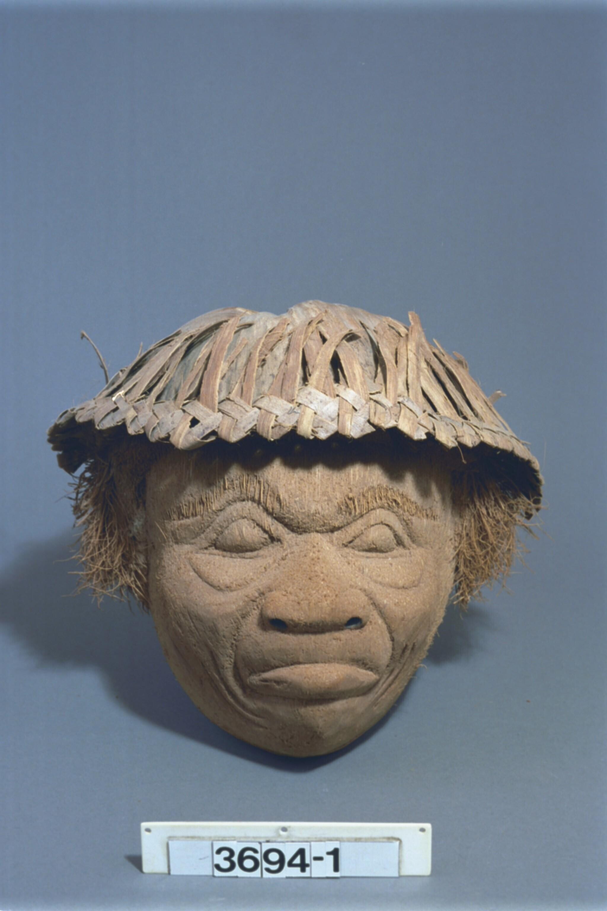 Beeldsnijwerk van kokosnoot in de vorm van een mense...