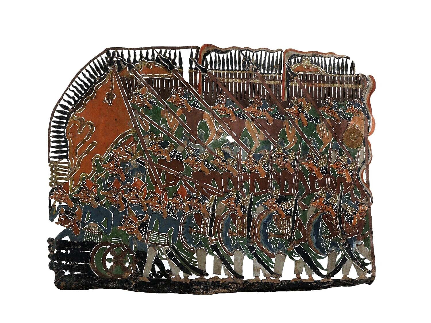 Wajangfiguur, vermoedelijk voorstellende een vlag