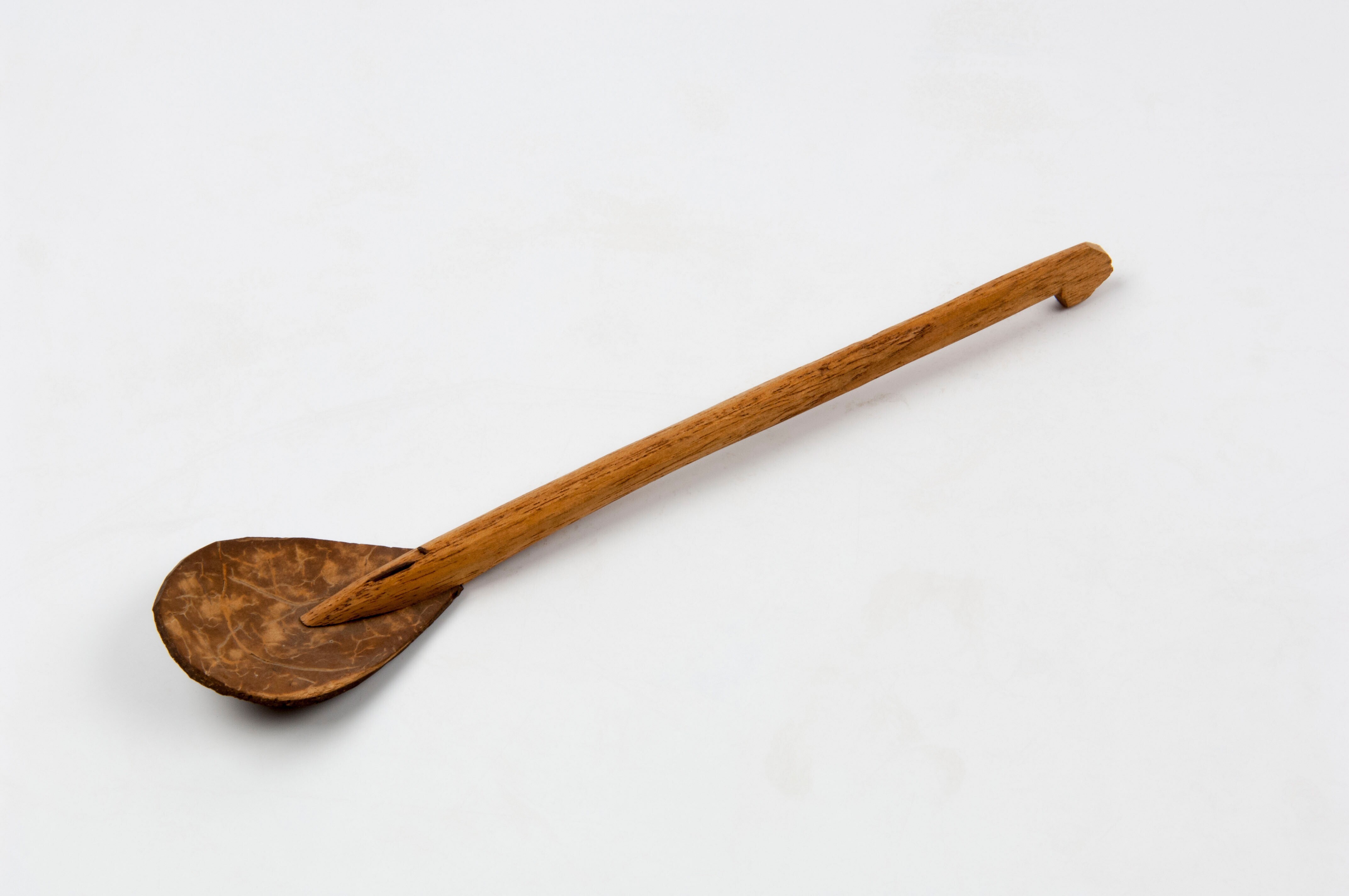 Lepeltje van kokosschaal met houten steel
