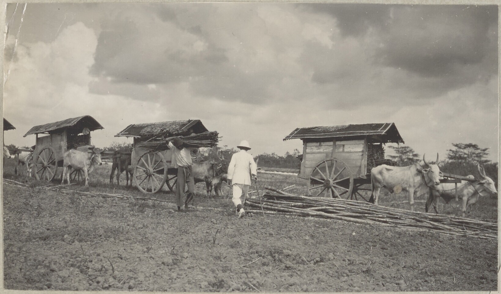 Ossenkarren op een tabaksonderneming