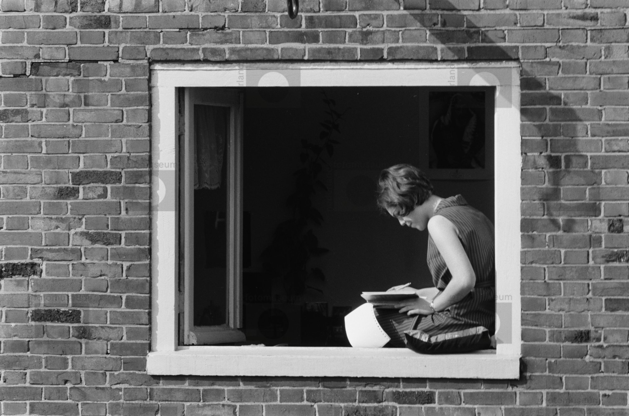 Amsterdam. Witte de Withstraat. Jonge vrouw in raamo...
