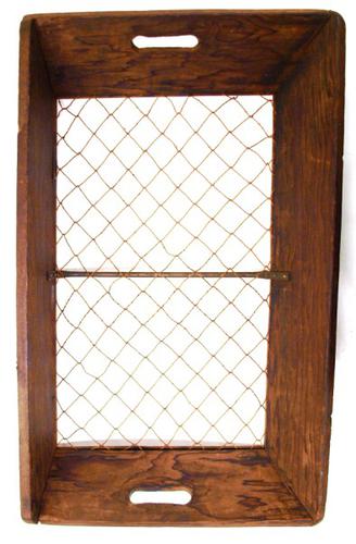 Aardappelzeef van hout en metaal gebruikt om een par...