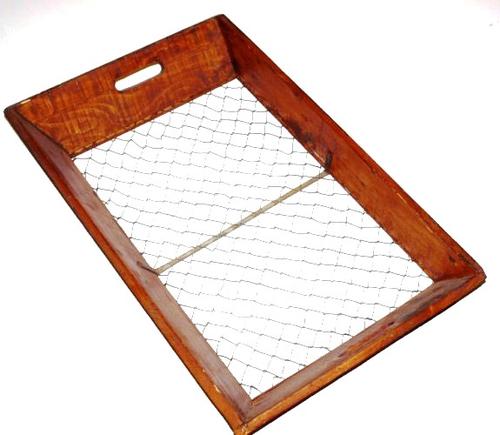 Aardappelzoekbak van hout gebruikt bij het handmatig...