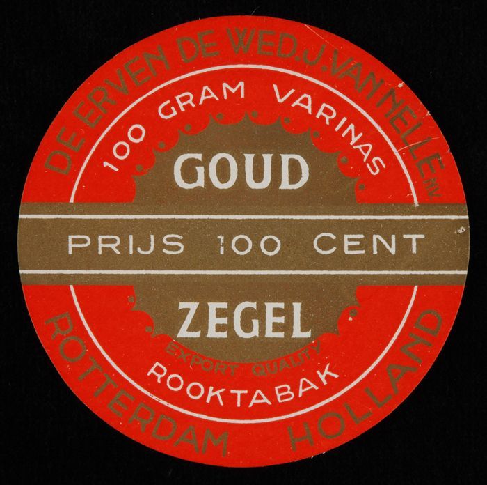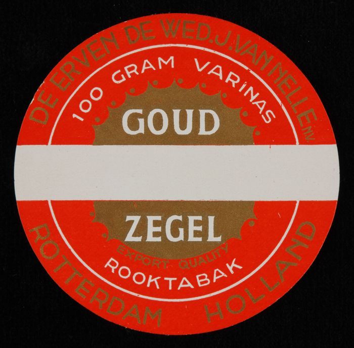 Rond label VAN NELLE´S VARINAS GOUDZEGEL ROOKTABAK, ...