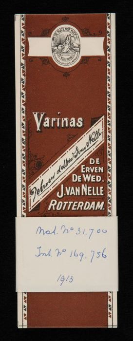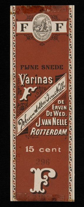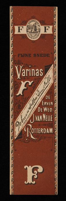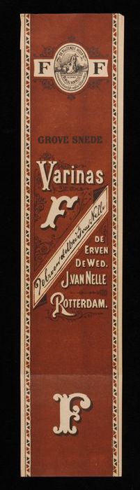 Label, bruin, VARINAS F, FIJNE SNEDE, van Van Nelle