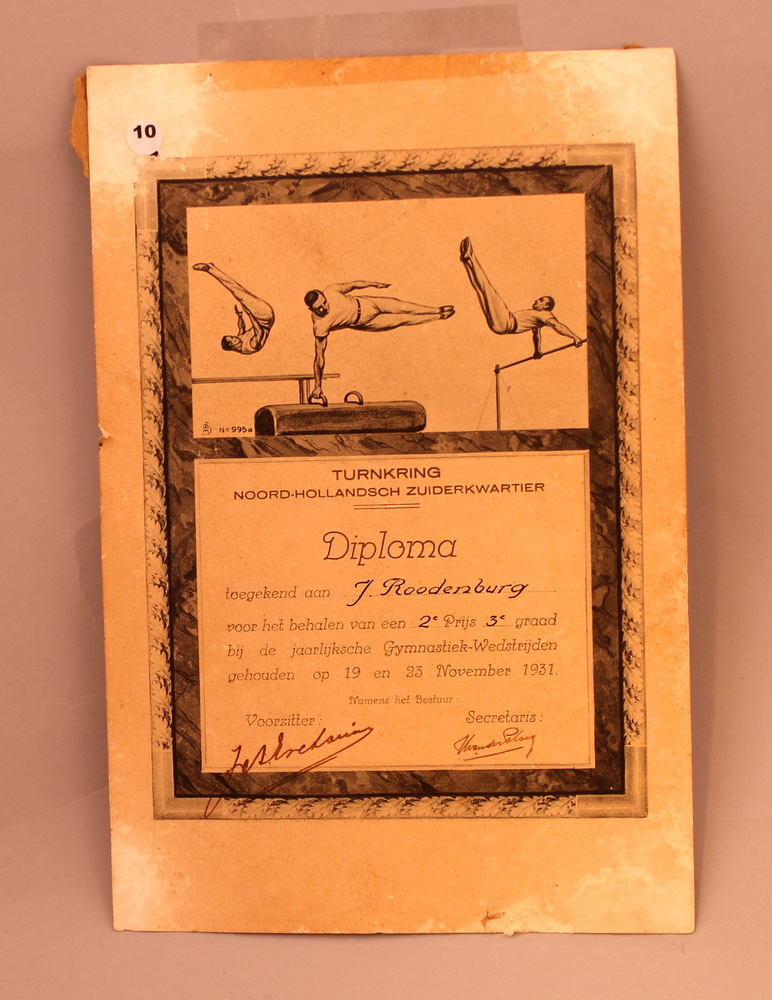 Diploma Turnkring Noord Hollandse Zuiderekwartier, 1931