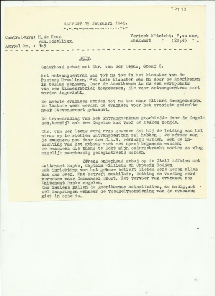 Rapport 19 februari 1945, bezoek aan Echt door J. Sc...