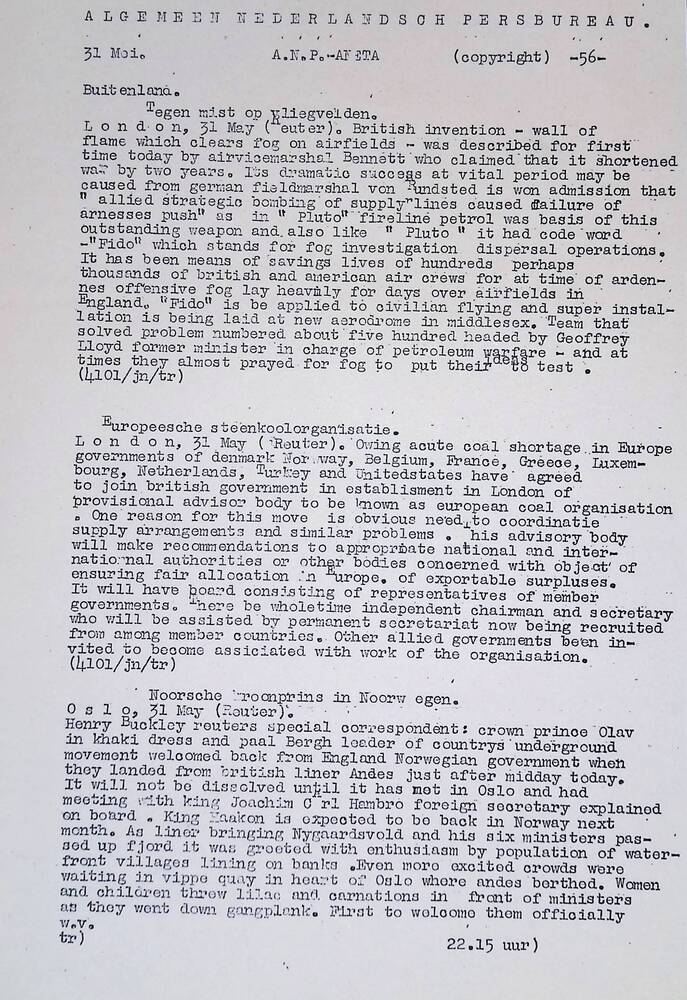 Algemeen Nederlandsch Persbureau, mededelingen, 31 m...