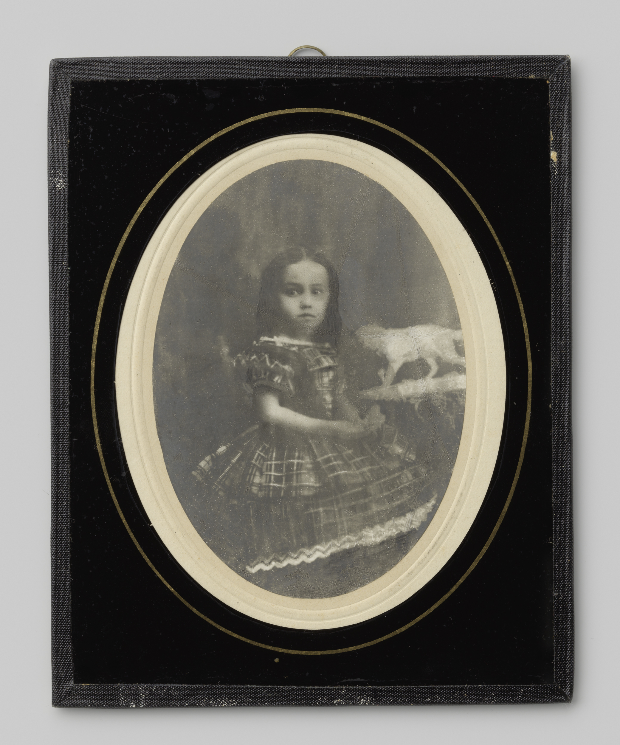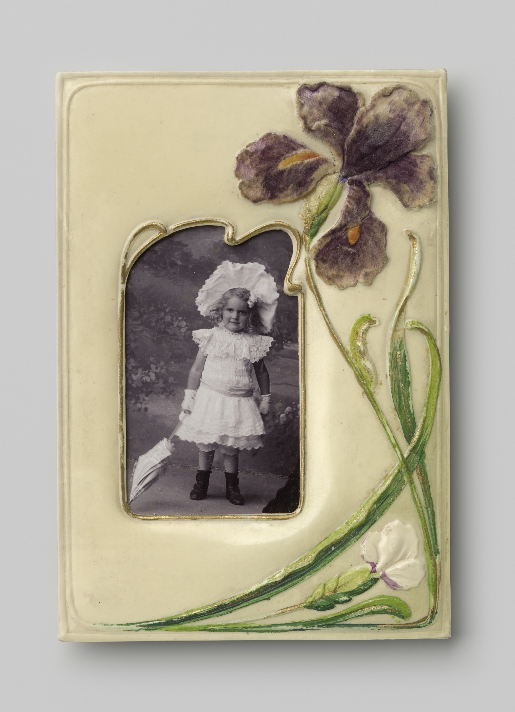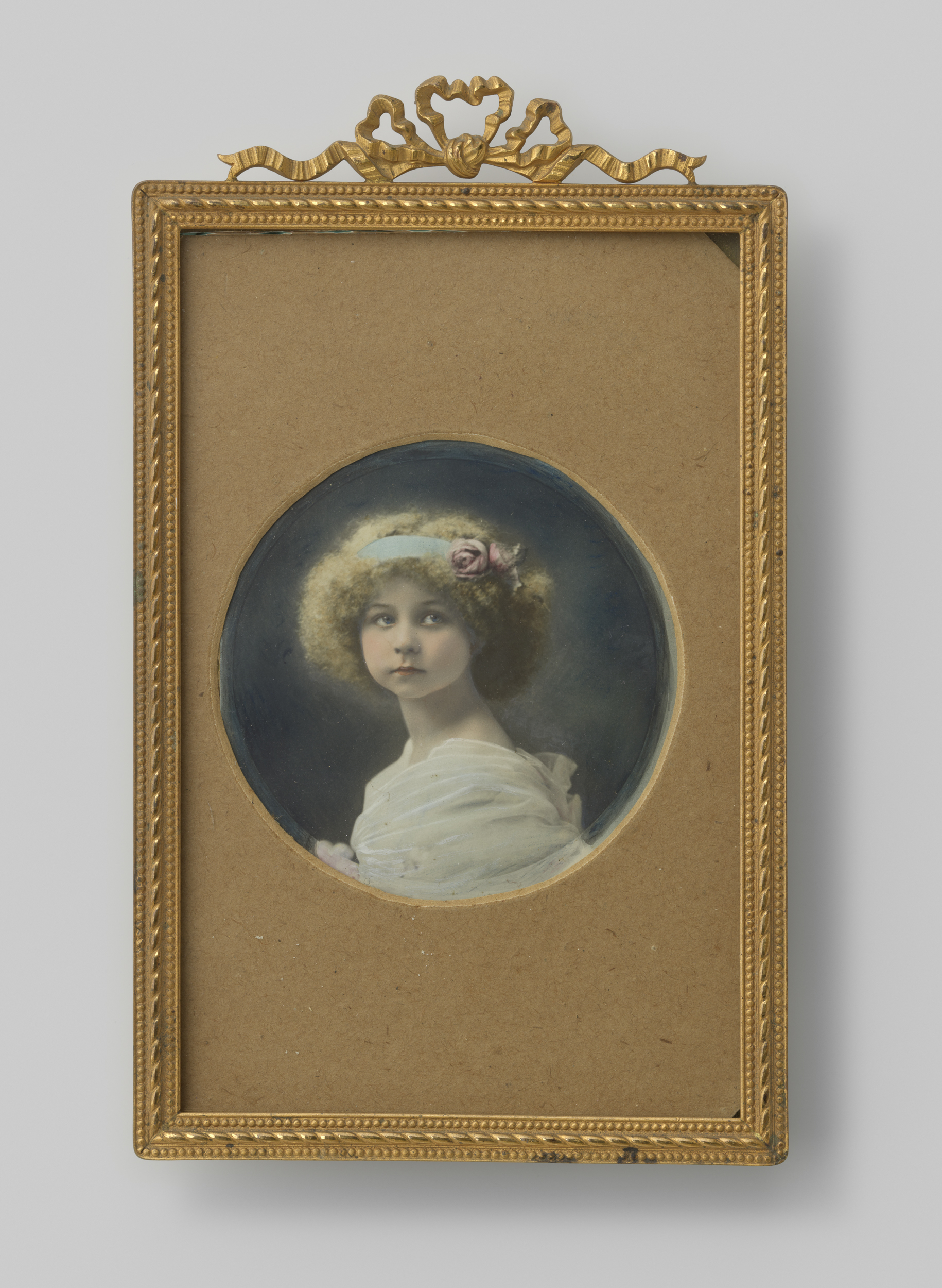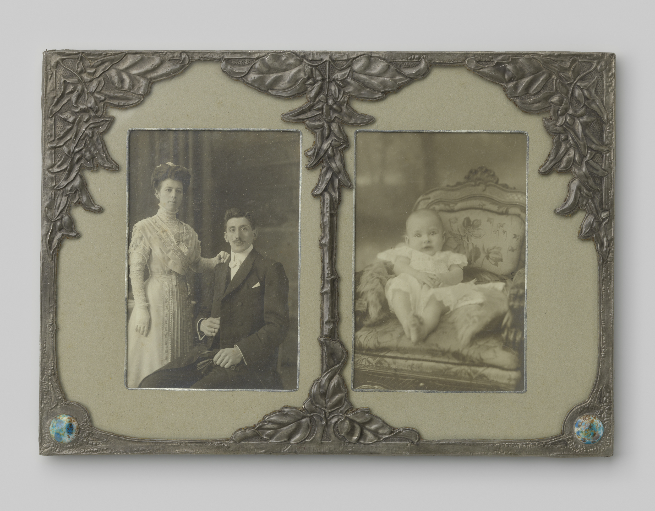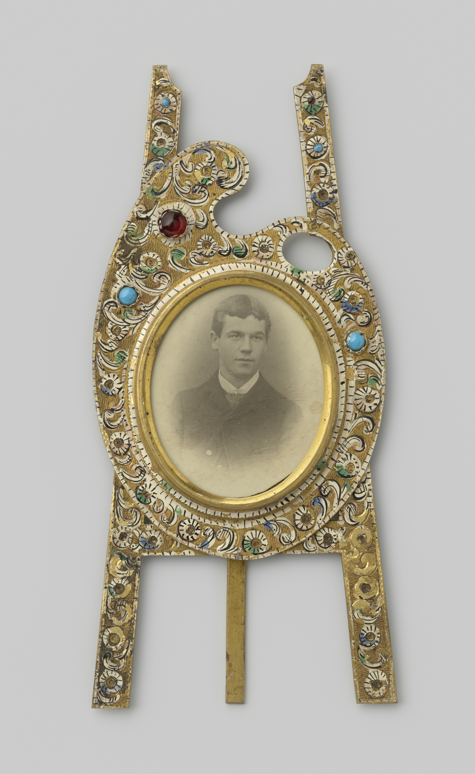 Naaigarnituur met schaar, naaigerei en een portret v...