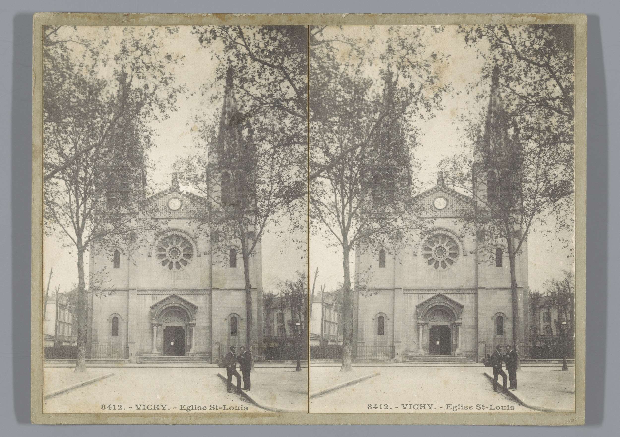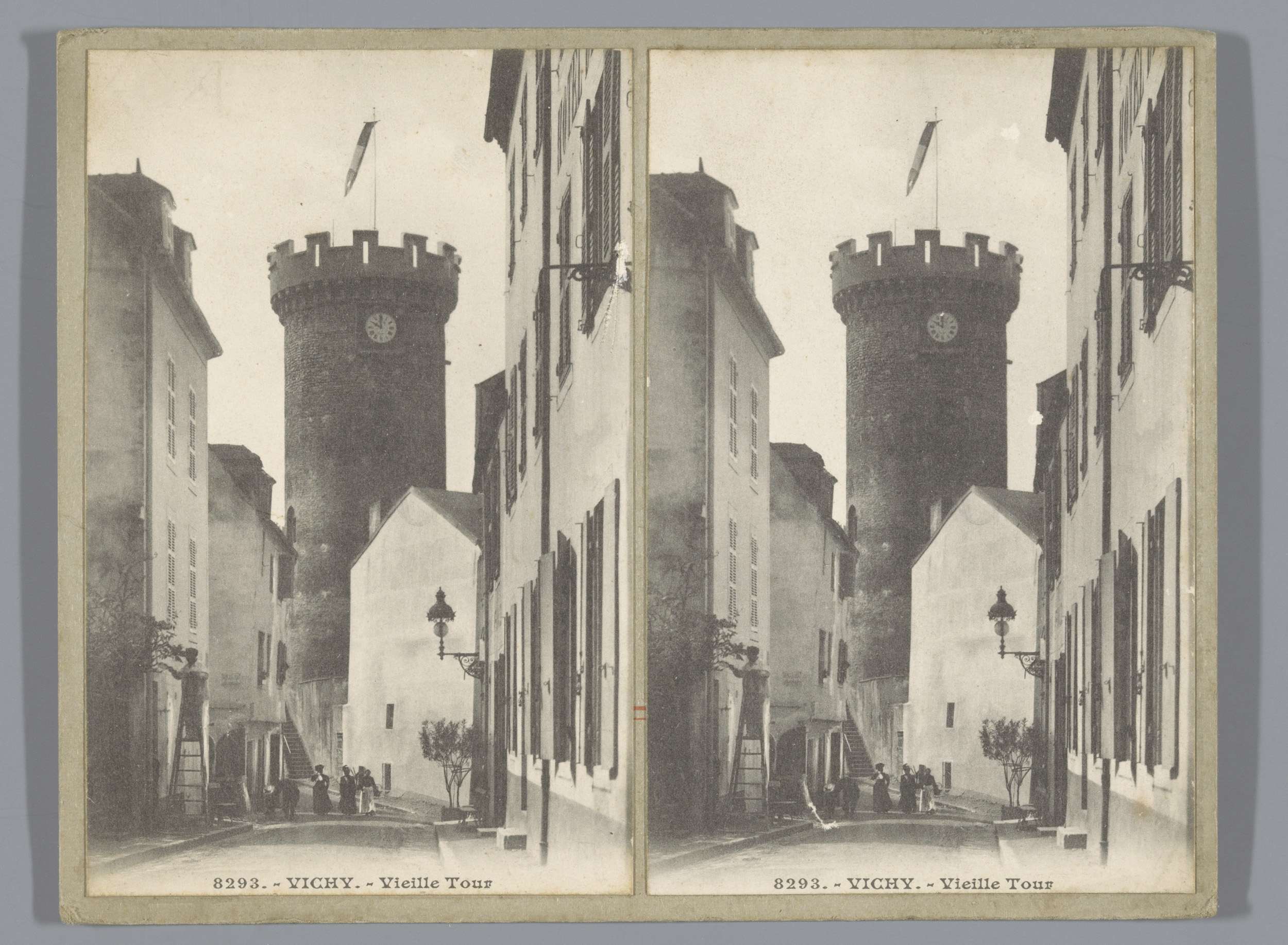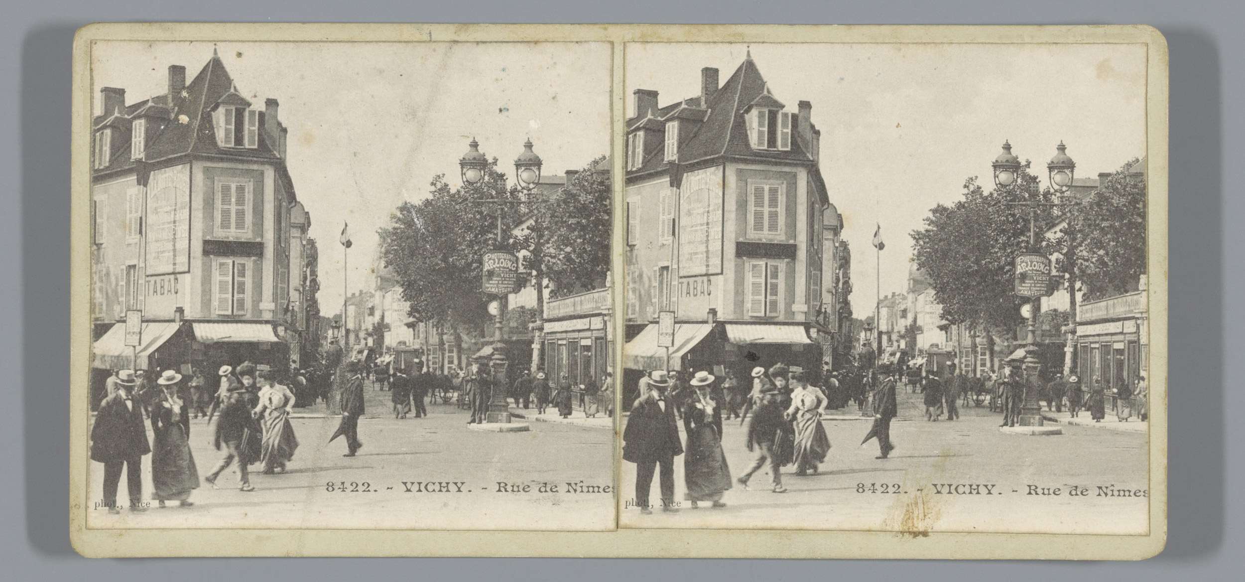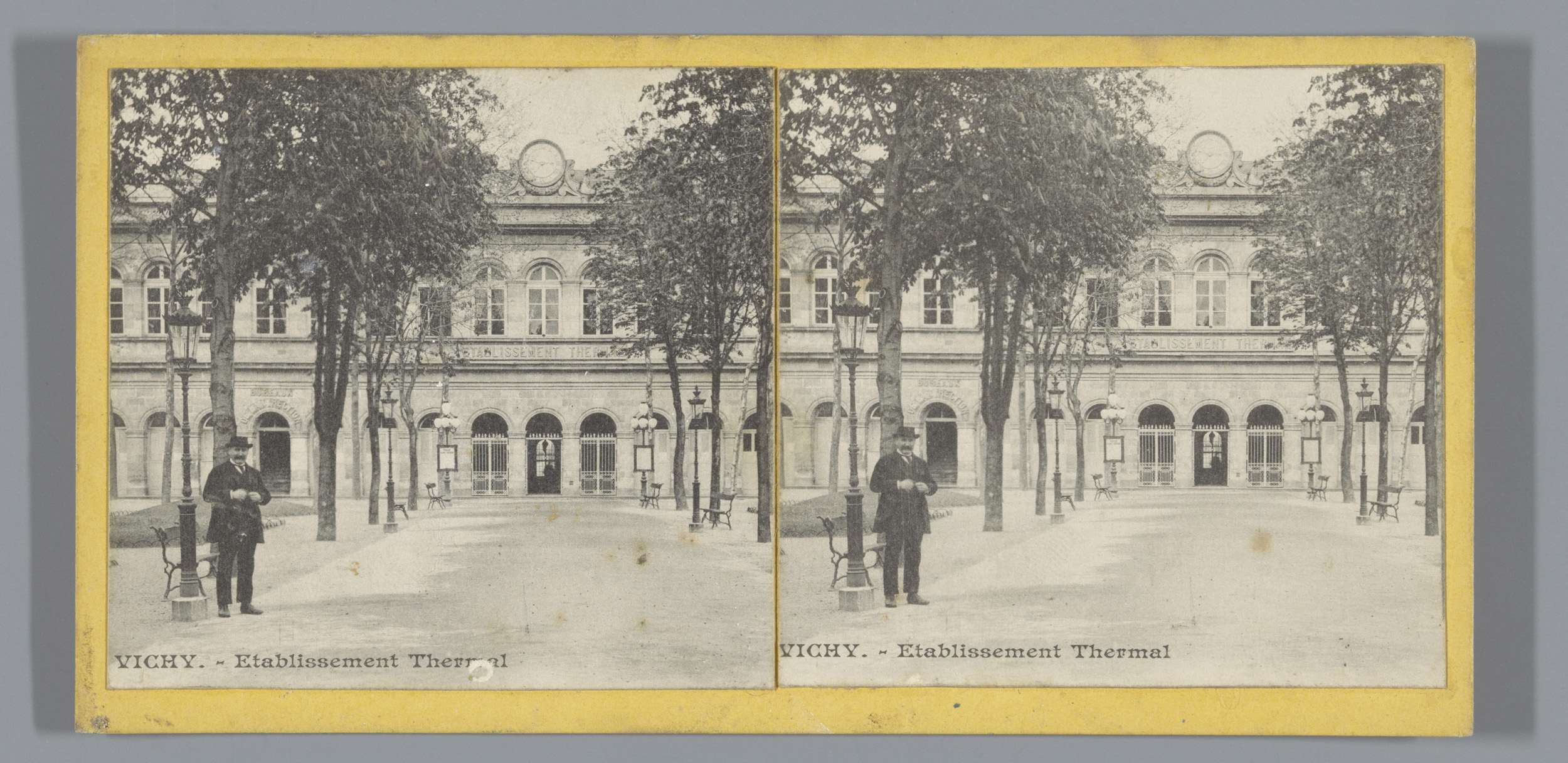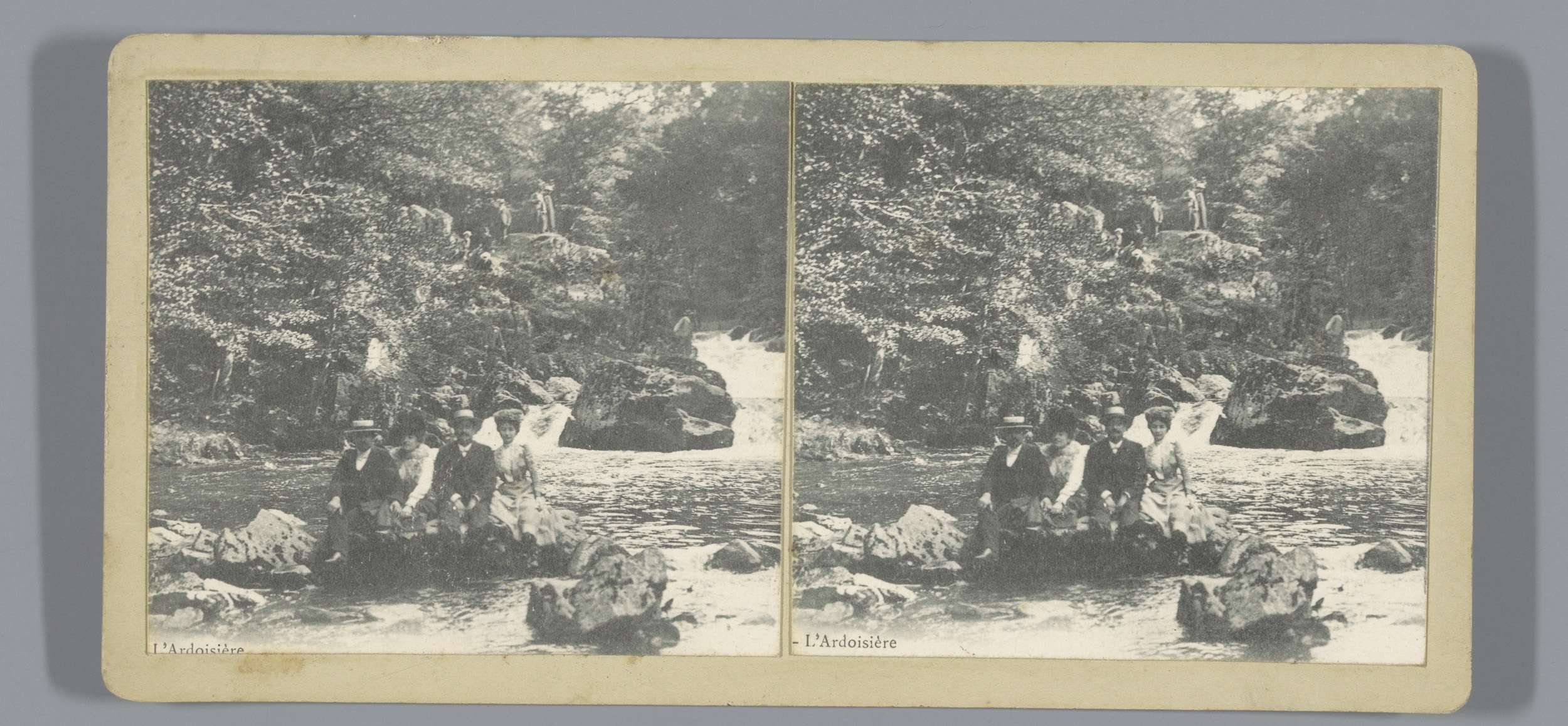 Mensen op een rots in vermoedelijk de Allier bij Vichy