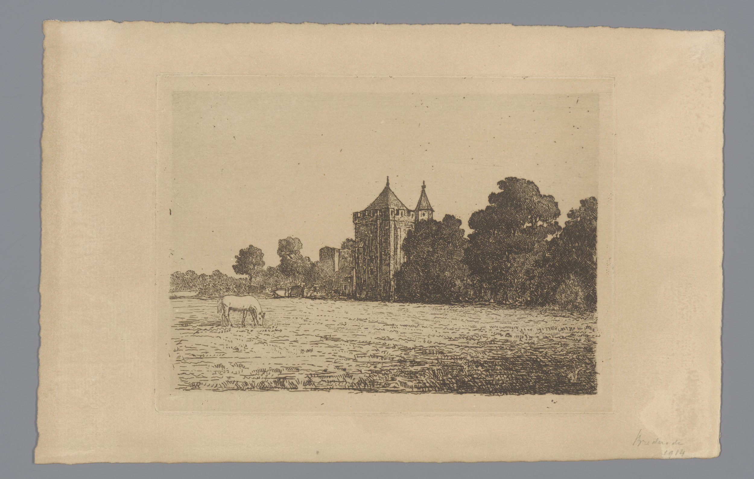 Gezicht op Kasteel Brederode vanaf een weiland gezien