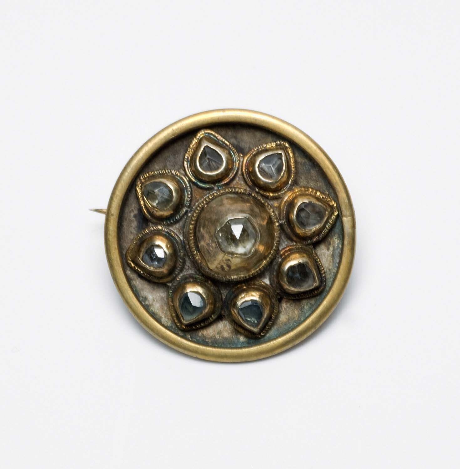 Broche van zilver en koper met sierstenen, vervaardi...