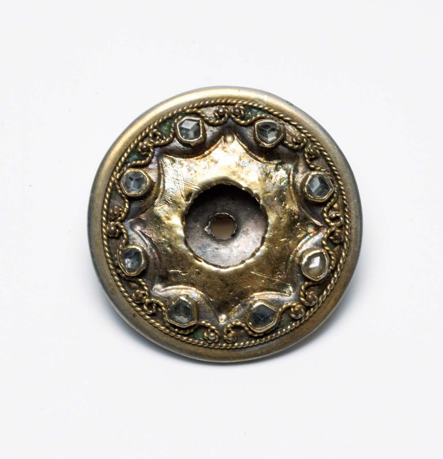 Messingen broche met sierstenen, vervaardigd uit een...