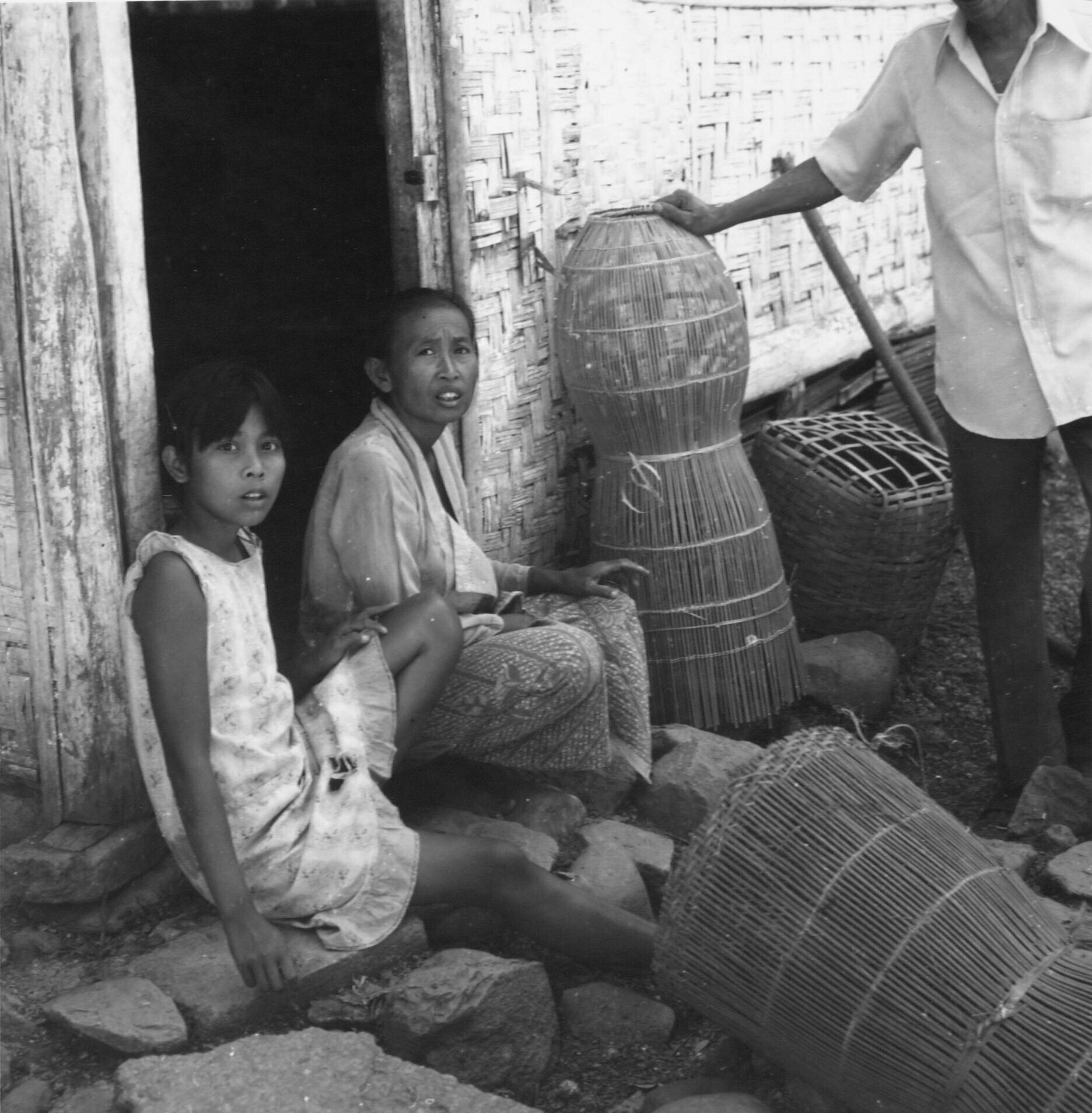 Een vrouw oogst lontarblad dat voor vlechtwerk moet ...