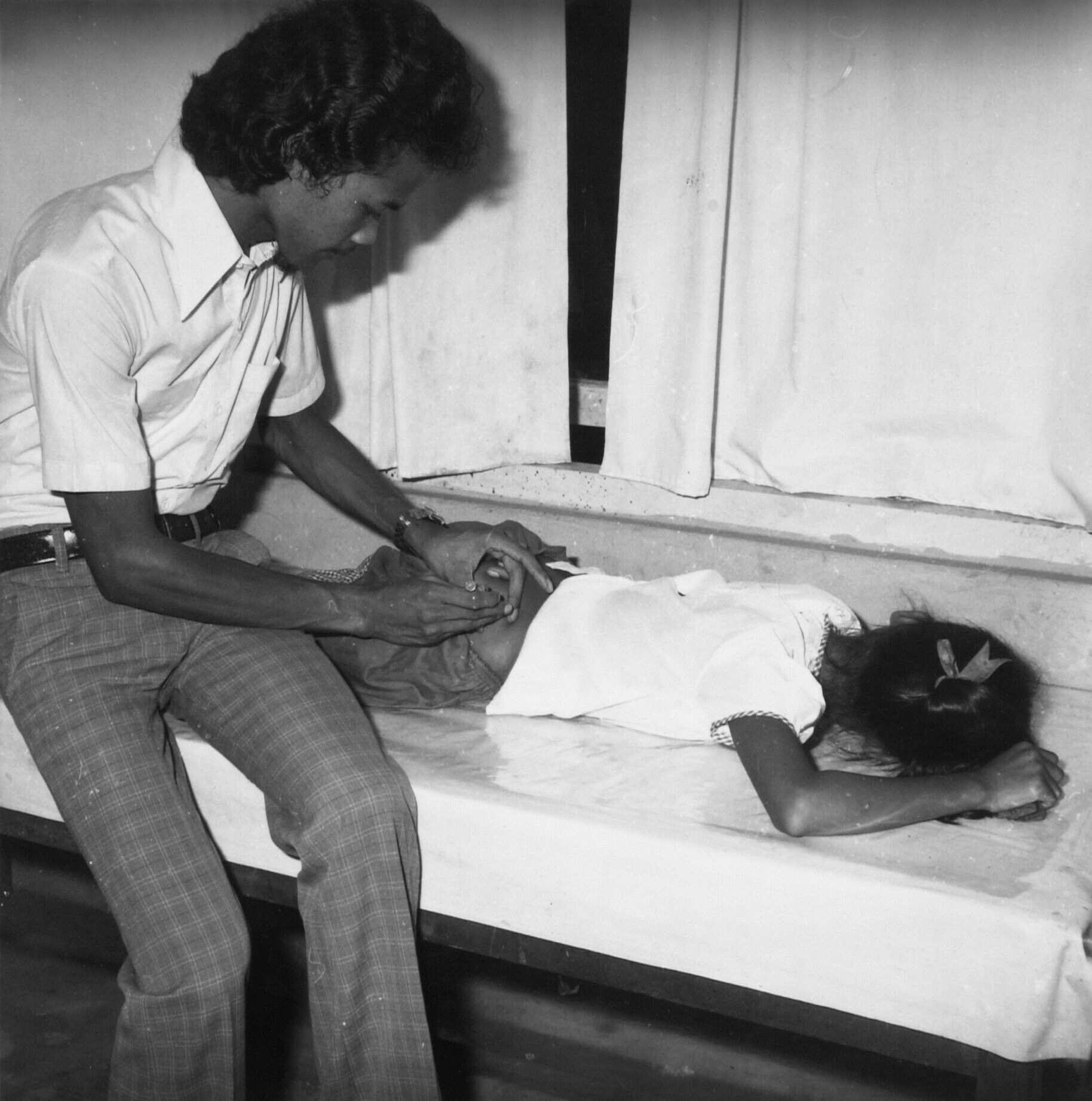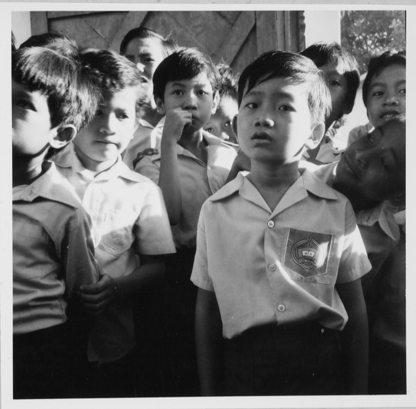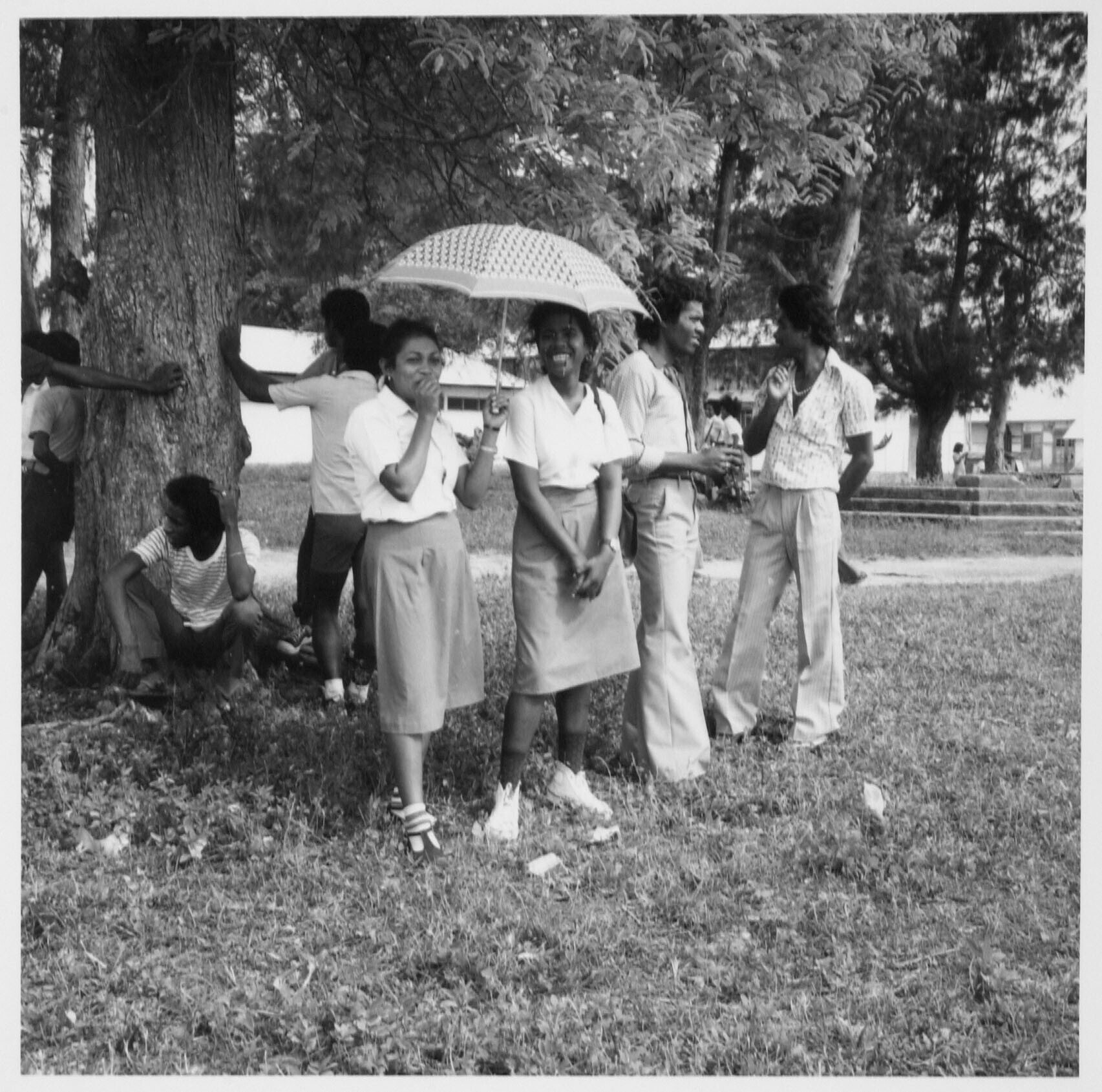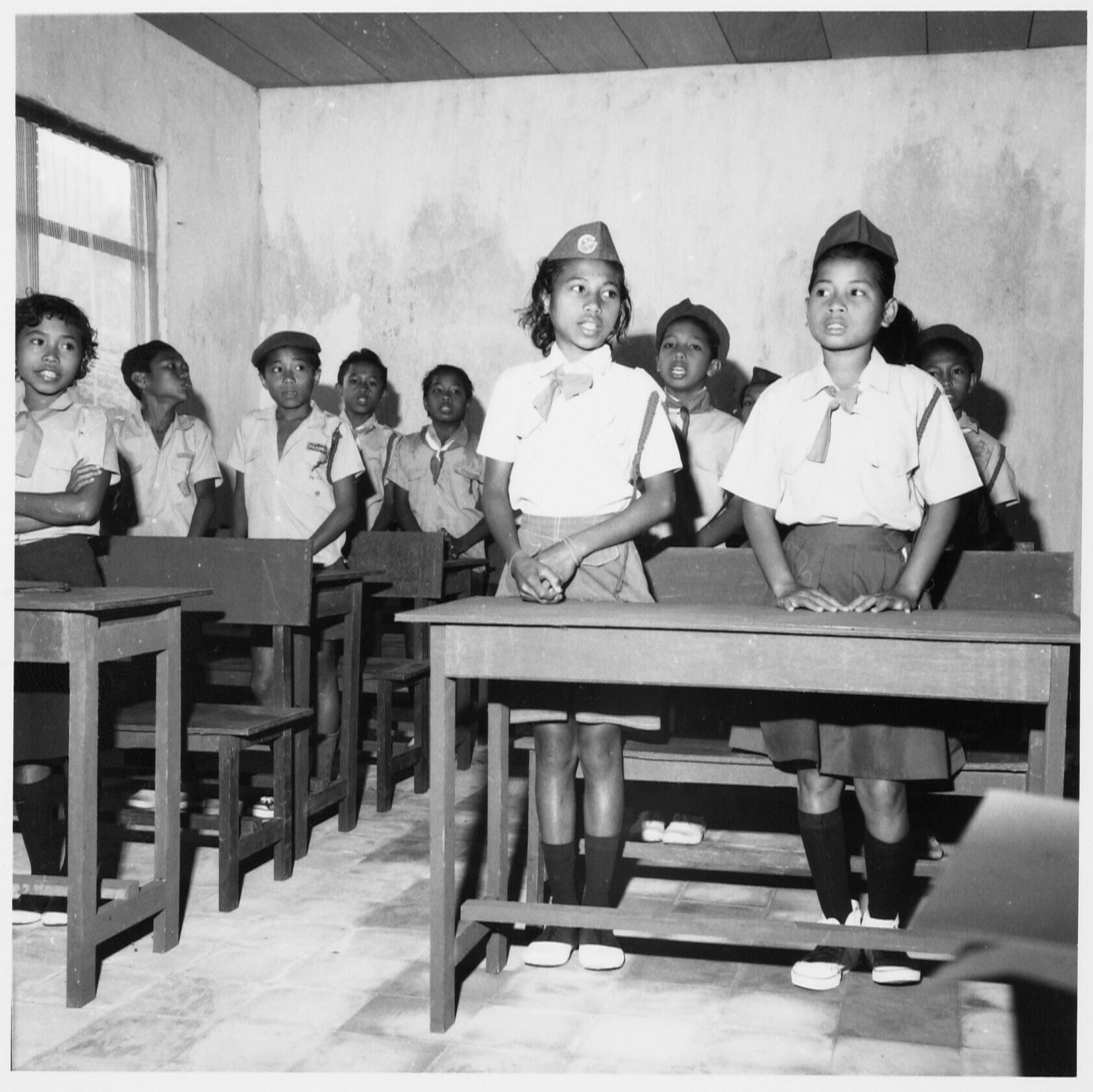 De klasgenoten van Novi Sapulete in padvinderuiform ...