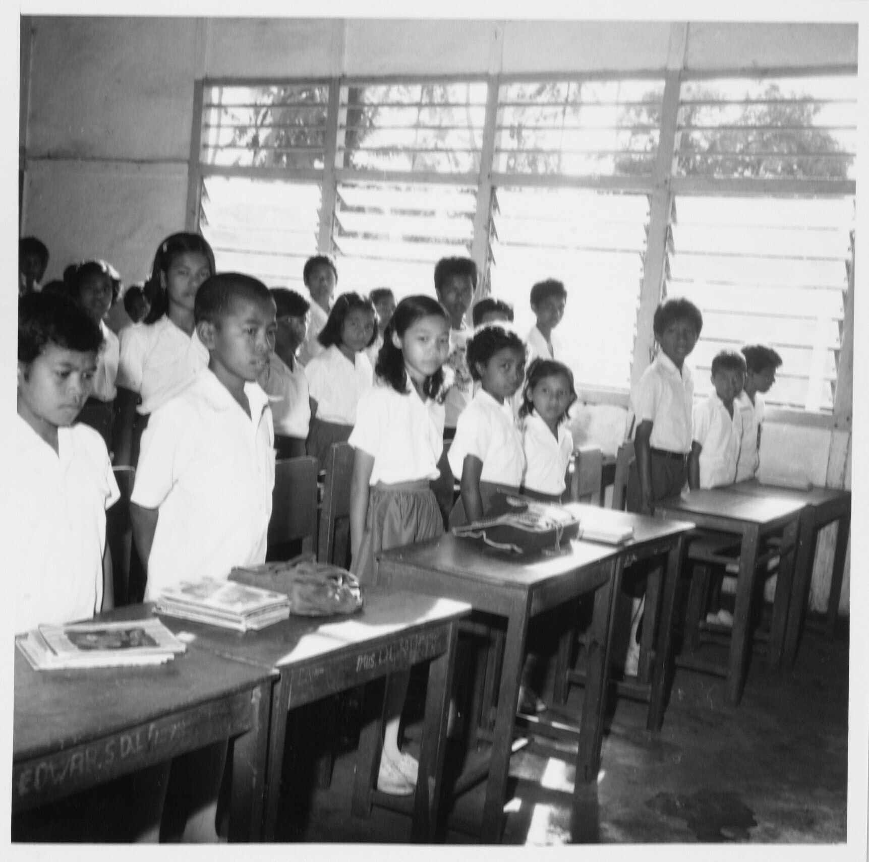 Dorpsschool tijdens het appel in de klas en de ochte...