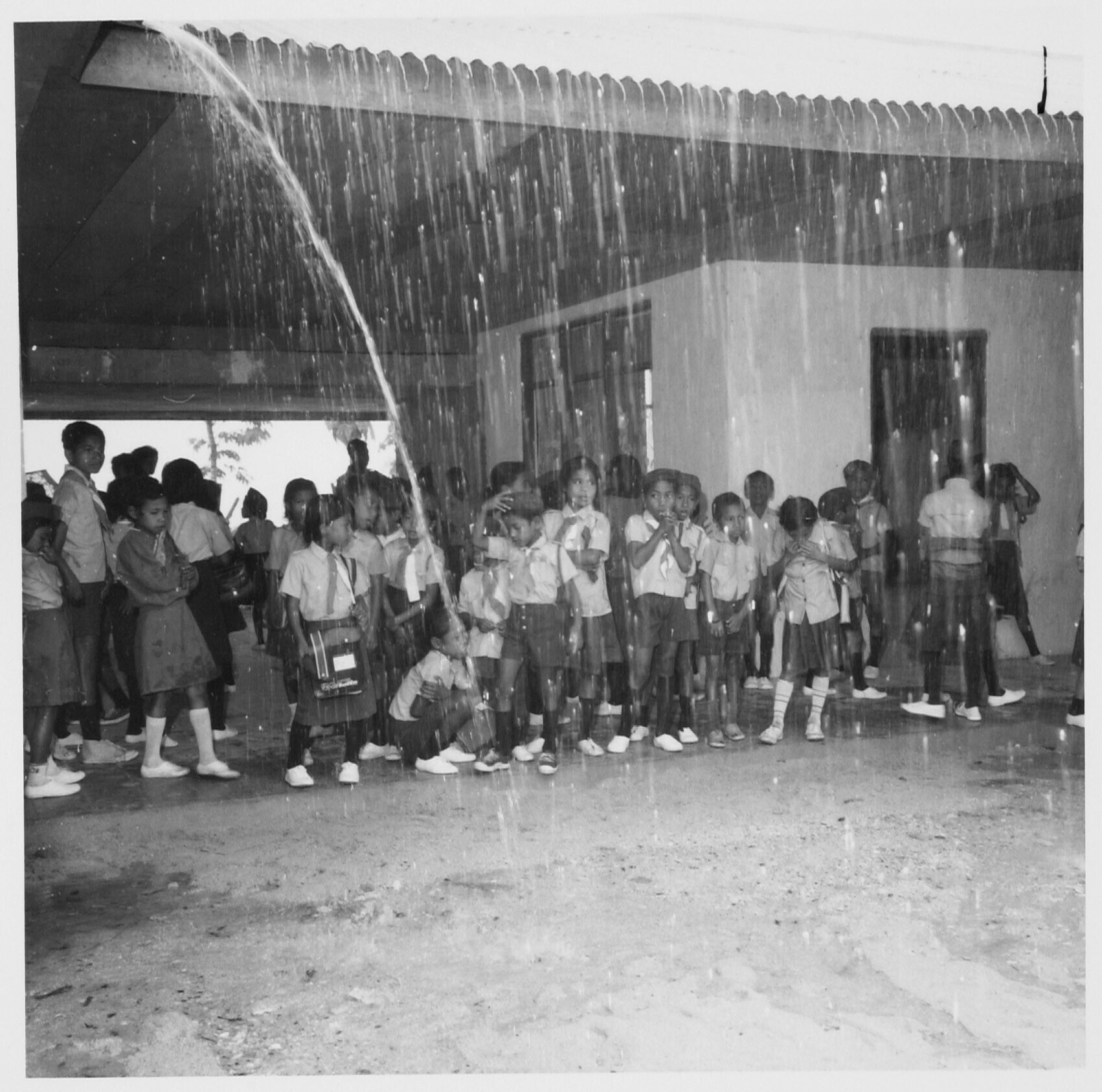 Latipa met haar schoolgenoten bezig met de dagelijks...