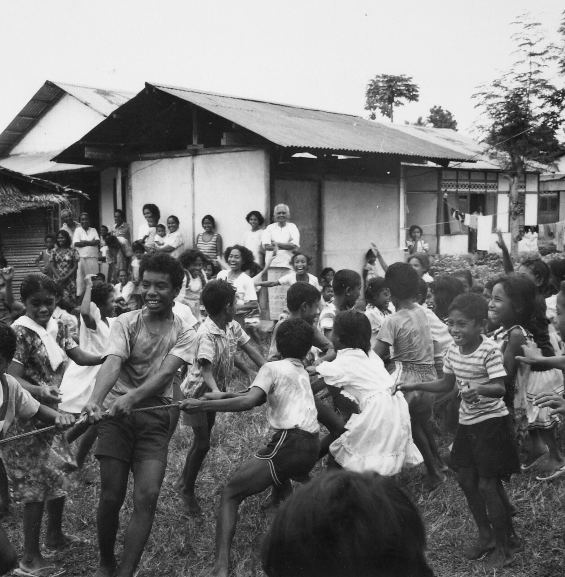 Molukse kinderen in hun zondagse kleren onderweg naa...