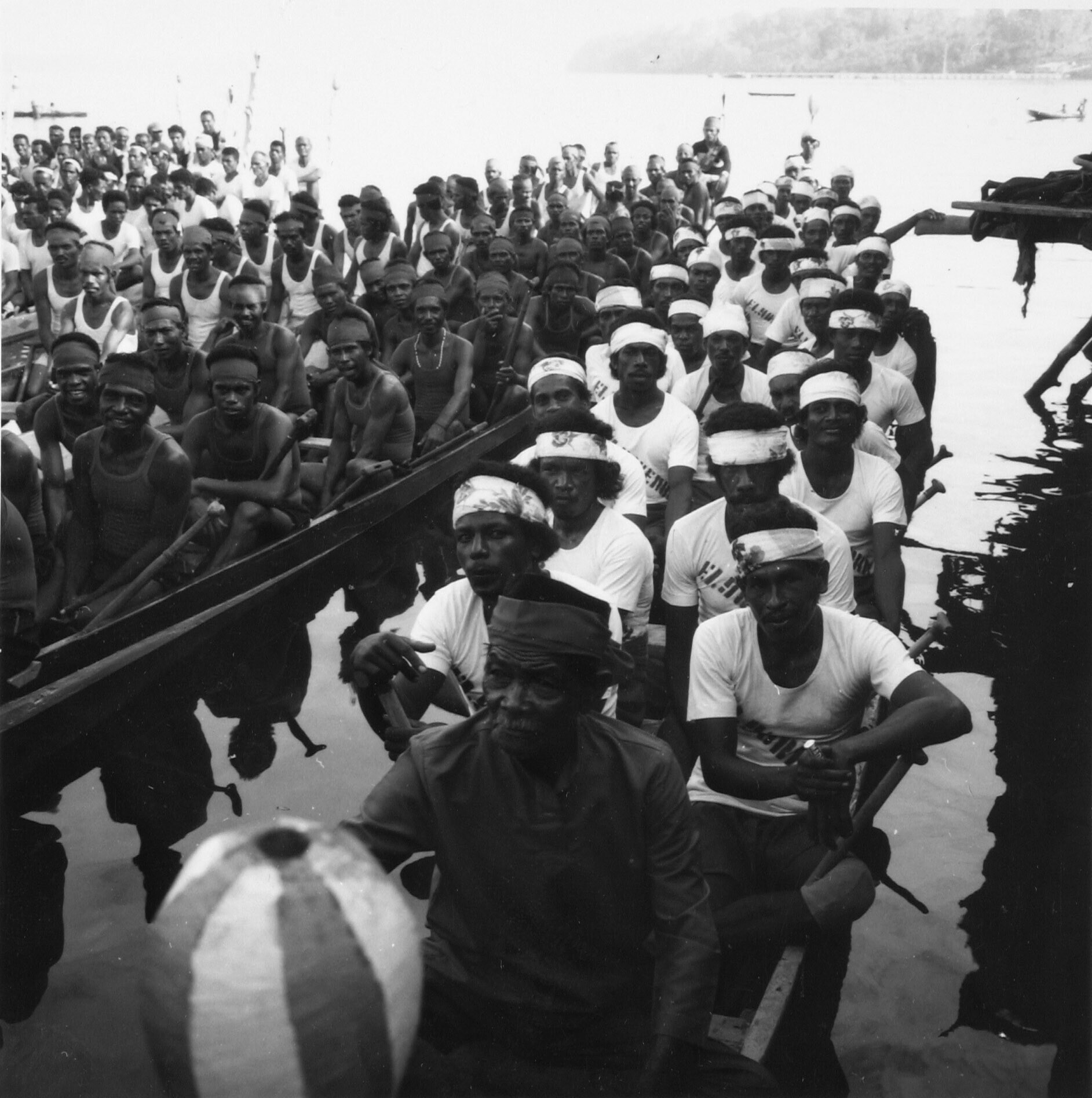Alle westrijdprauwen verzamerd in de haven voor de w...