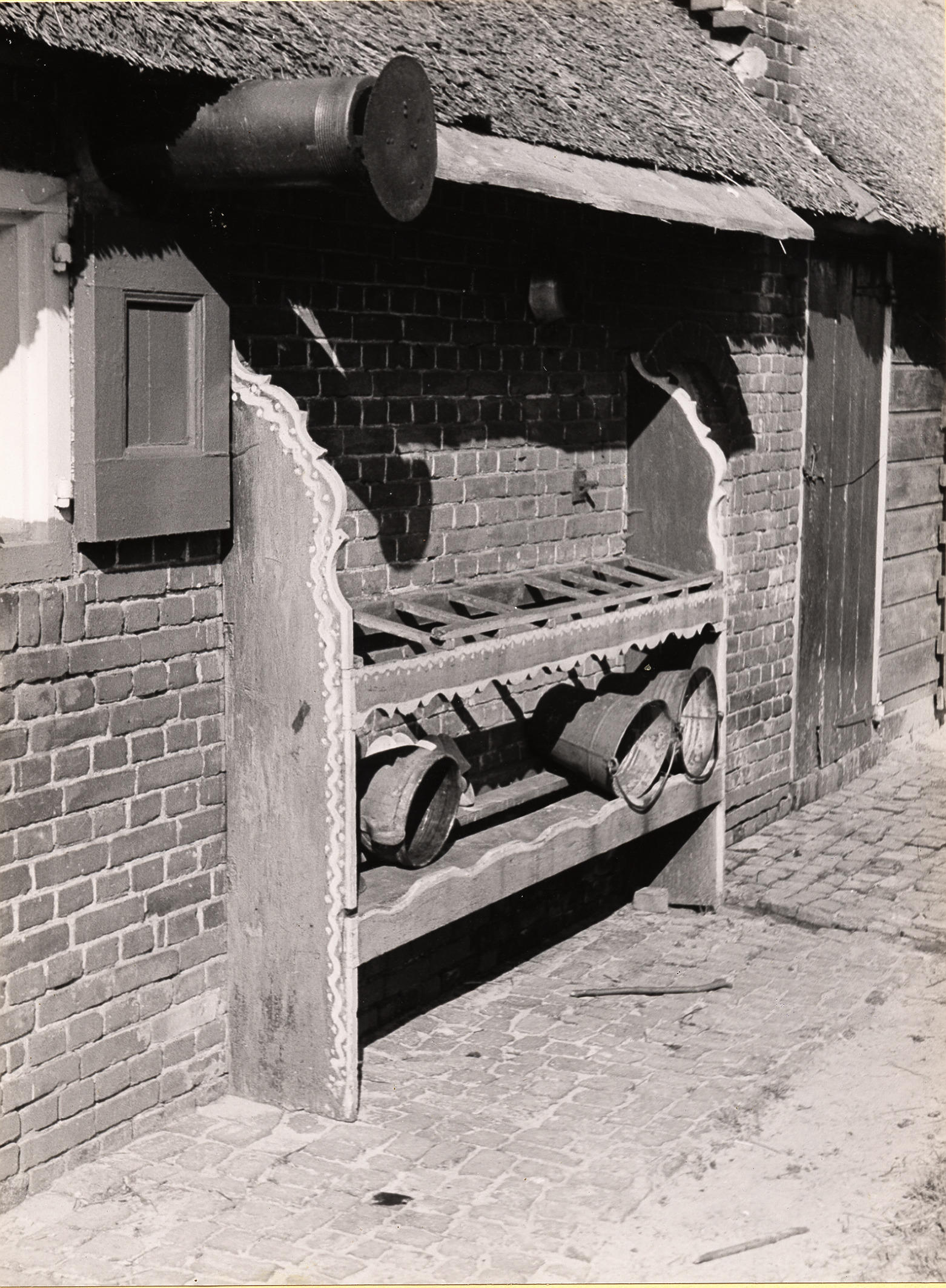 Melkbussenrek, Staphorst, 1944 (zwart-wit foto)