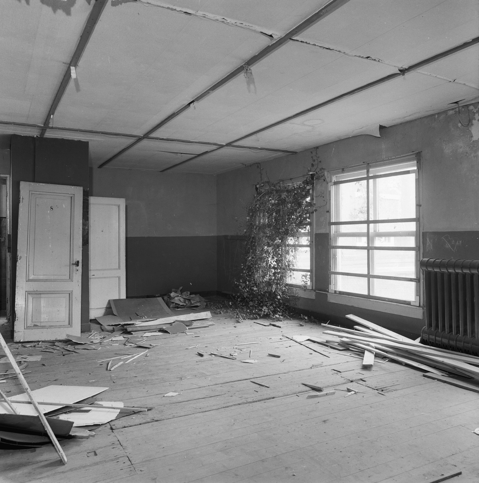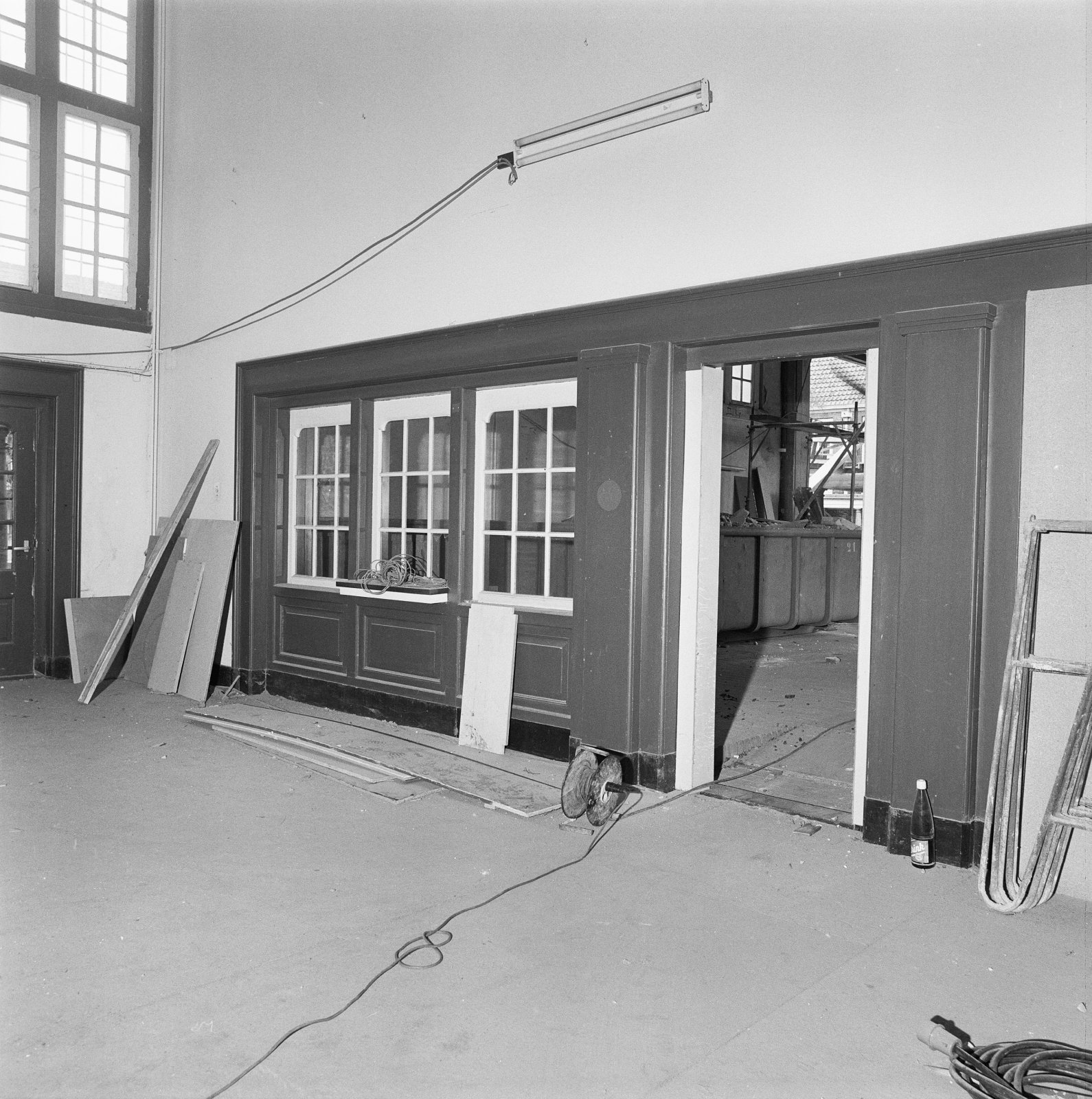 Interieur, scheidingswand tussen hal en zaal I, pui