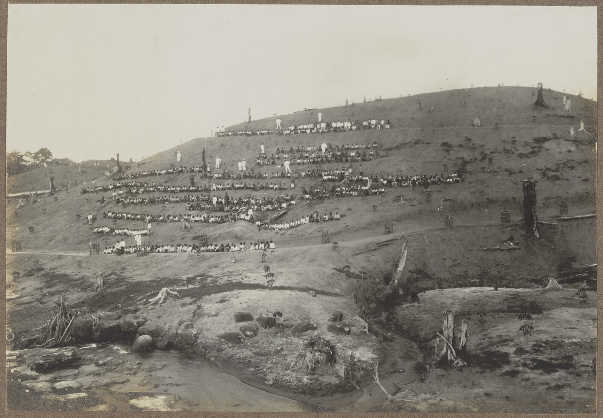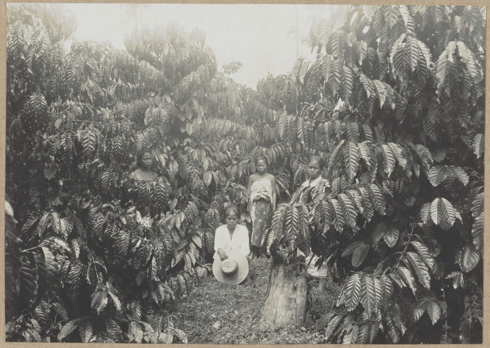 Group portrait Javanese contract labourers on cleare...