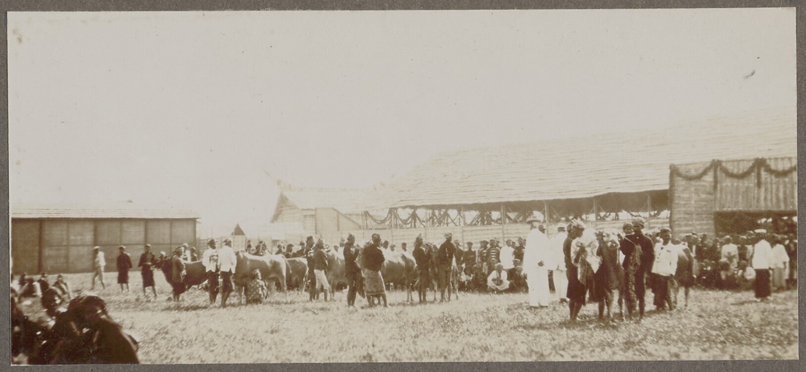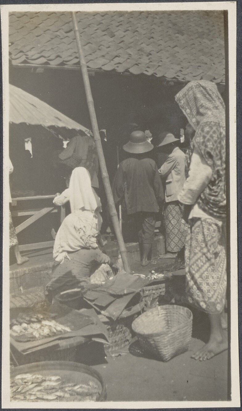Bezoekers en kooplieden op de markt
