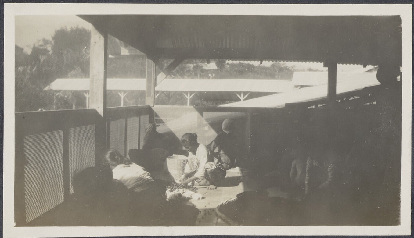 Vrouwen sorteren koffiebonen