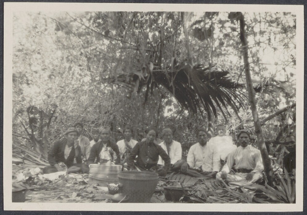 Groep Javaanse mensen en enkele Europese mensen. Per...