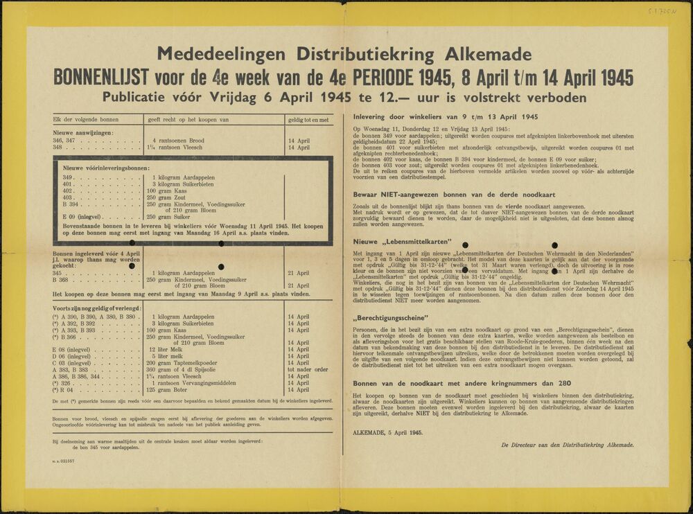 Poster Mededeelingen Distributiekring Alkemade, 8 ap...