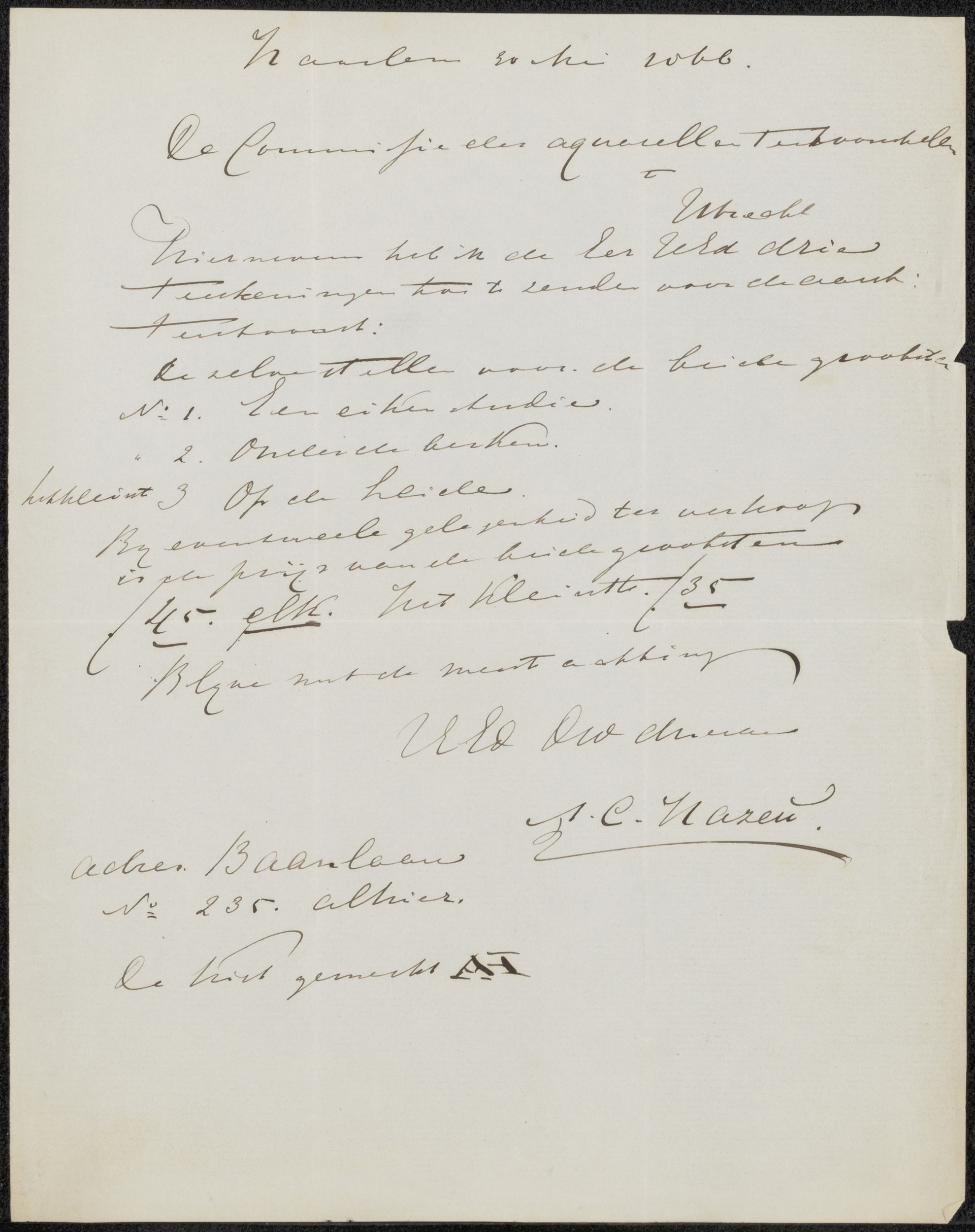Brief aan de commissie van de tentoonstelling van aq...