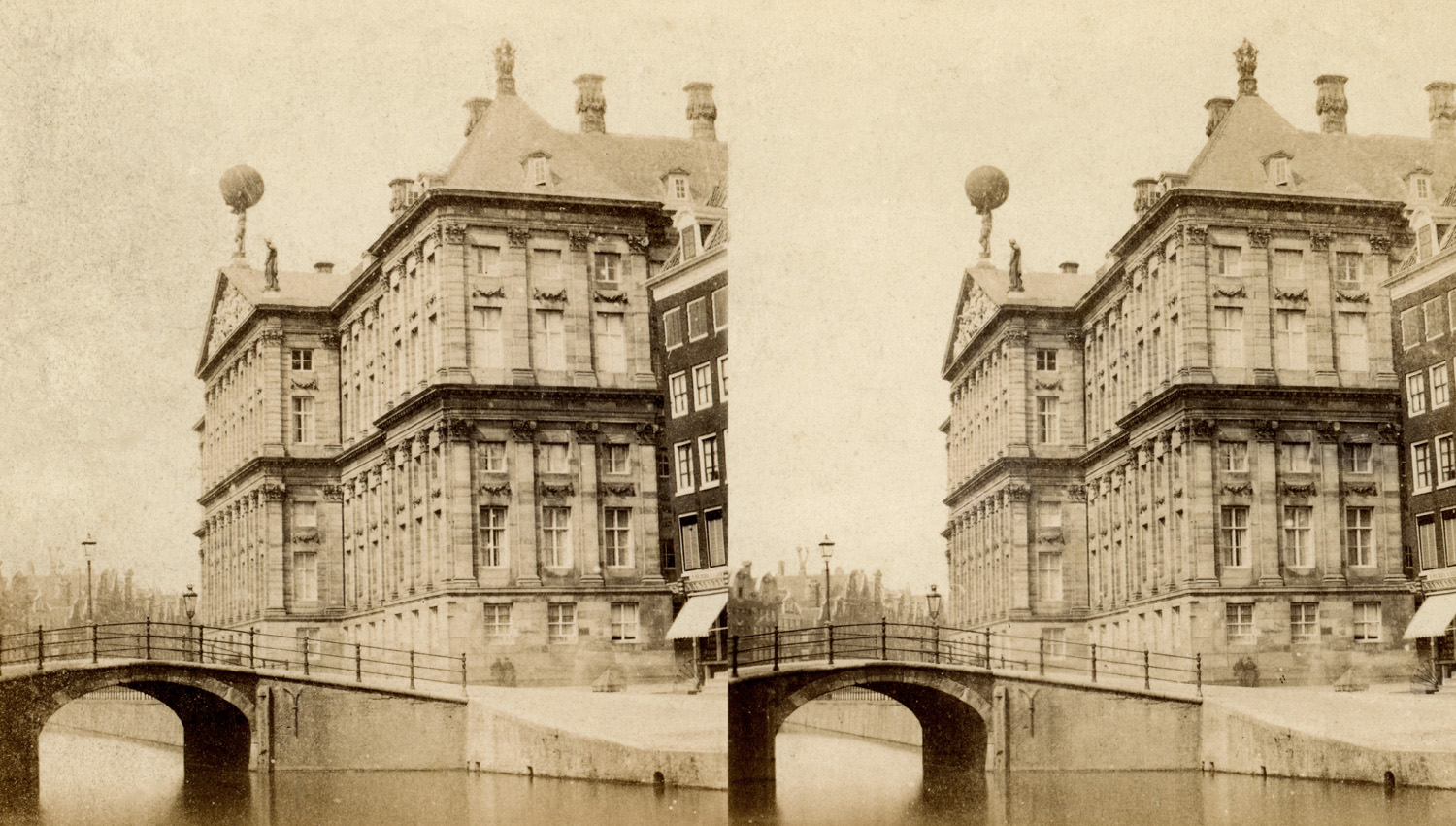 Stereokaart voorstellende het paleis op de Dam te Am...