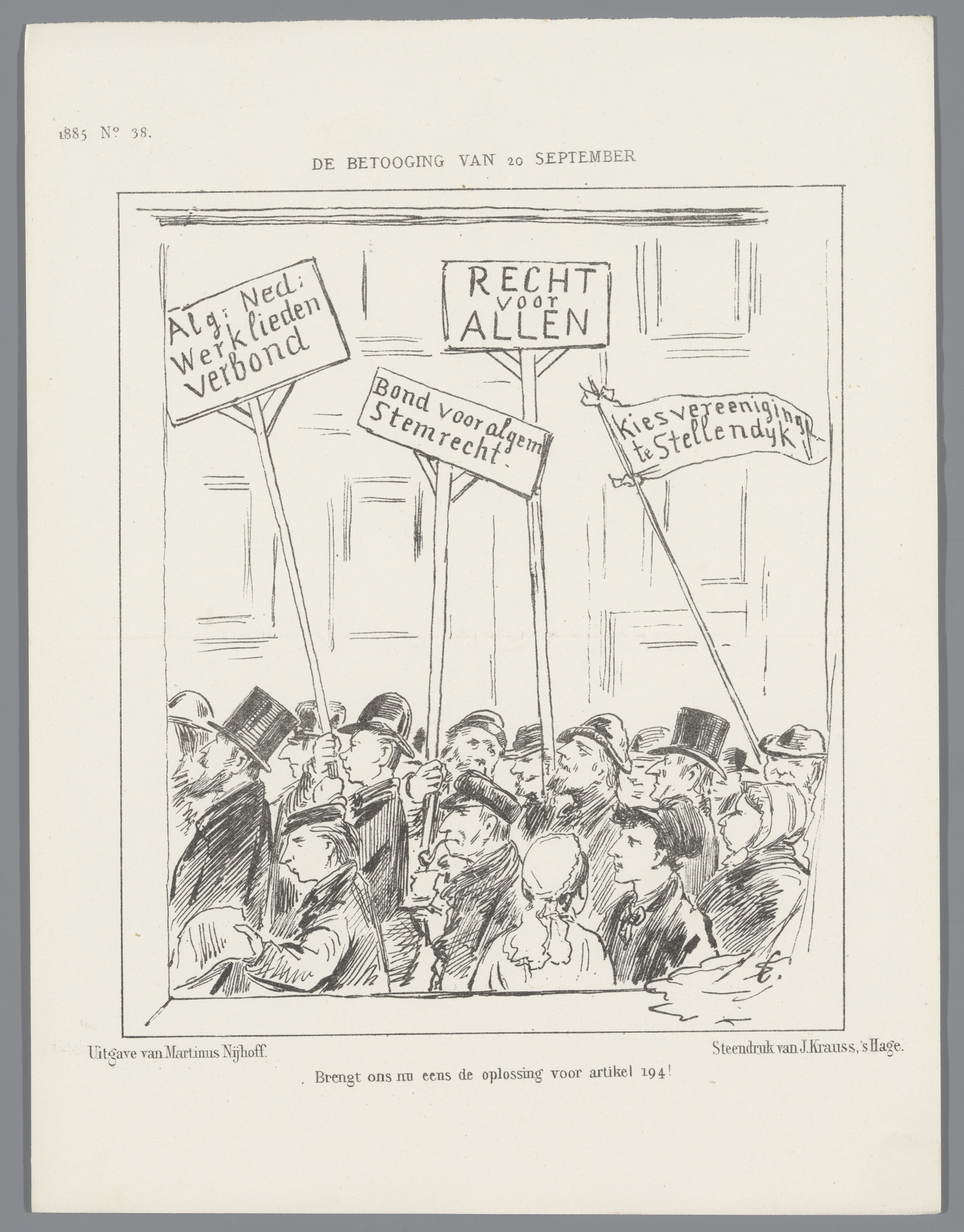 Spotprent over stemrecht, 1885