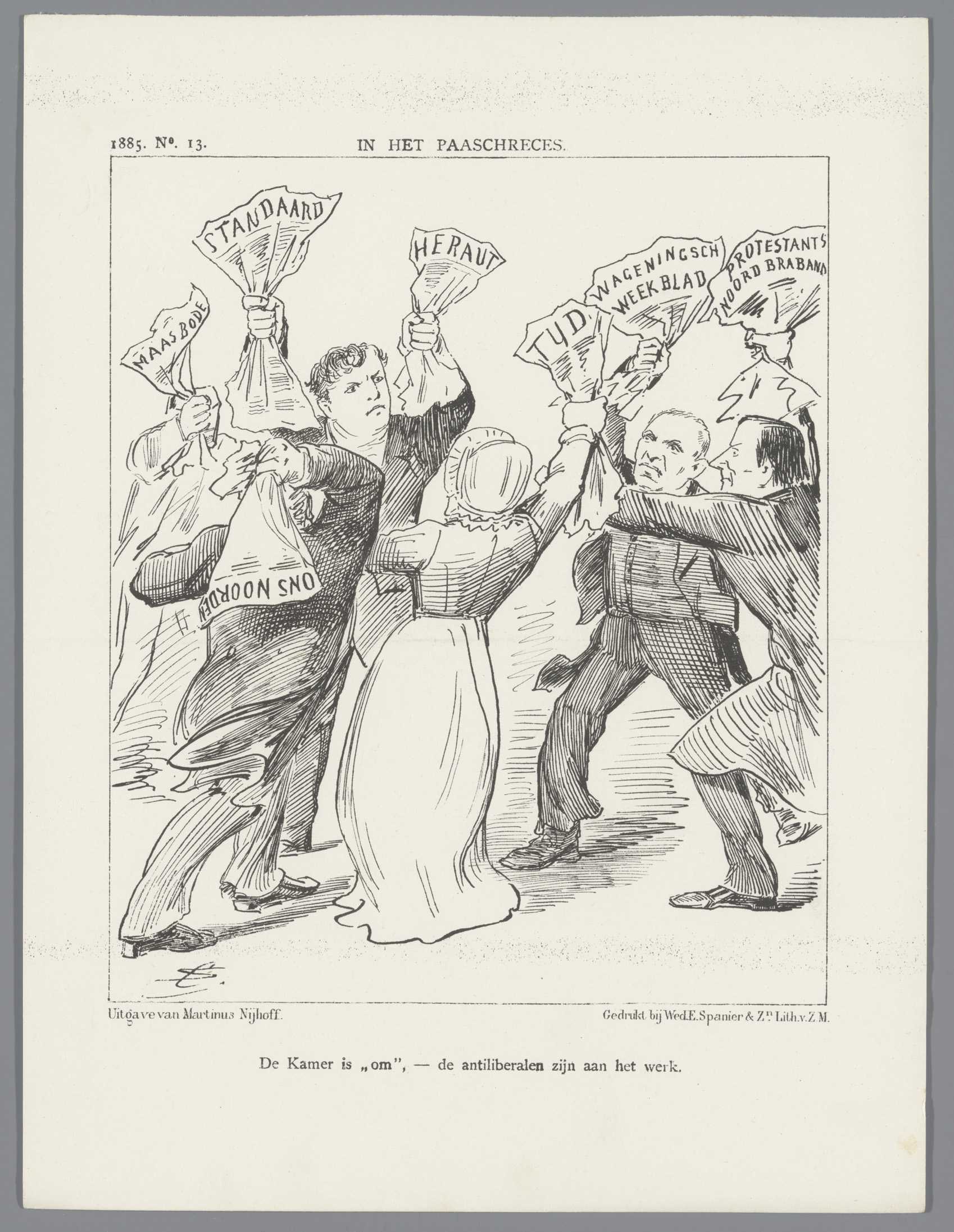 Spotprent met strijd tussen de dagbladen, 1885