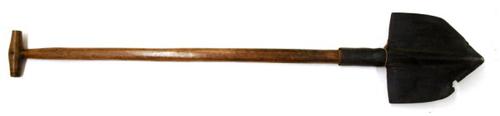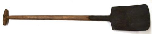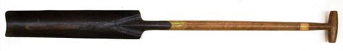 Boorspade van metaal met houten steel gebruikt voor ...