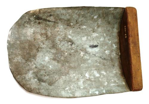 Voerschep van zink en hout gebruikt voor het opschep...