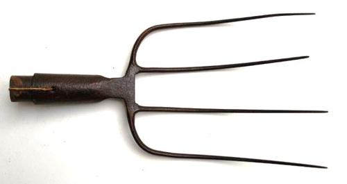 Vork van metaal met houten steel gebruikt voor het v...