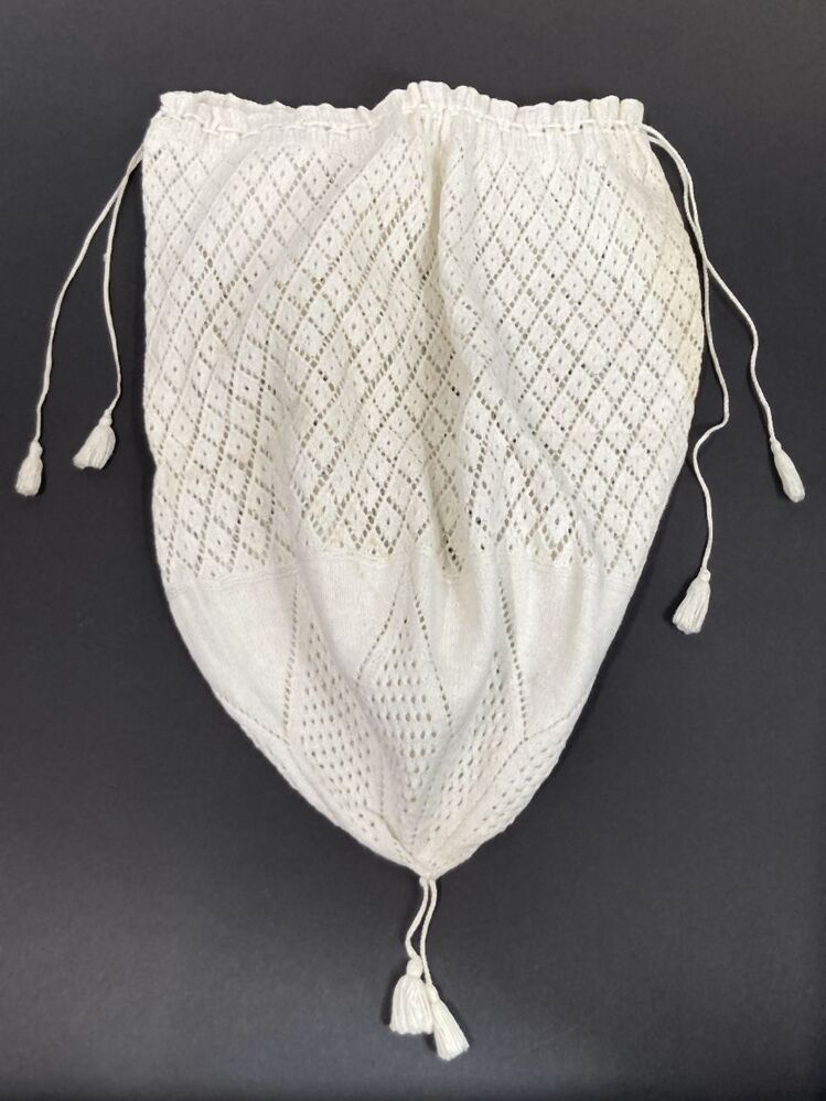 Buideltas, gebreid van dun wit katoen met ajour ruit...