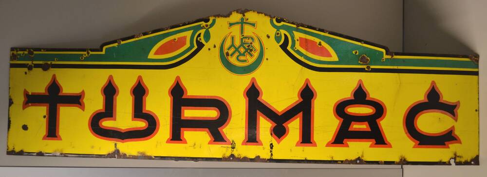 Reclamebord van geëmailleerd metaal in de kleuren ro...